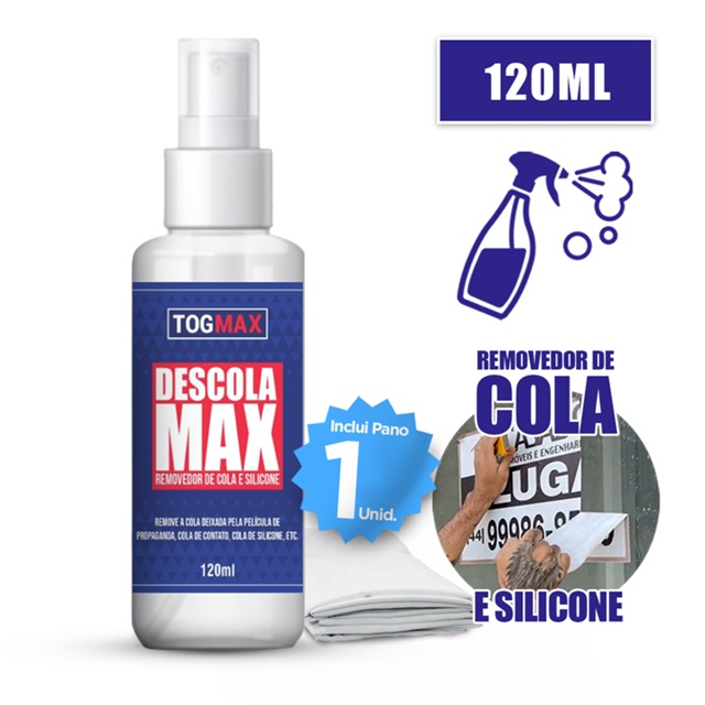 | Removedor Spray Descola Max 120ml Tira Cola, Grude, Adesivo, Silico... este produto | R$ 31,25 | 8% | 4.7/5 | 13 |