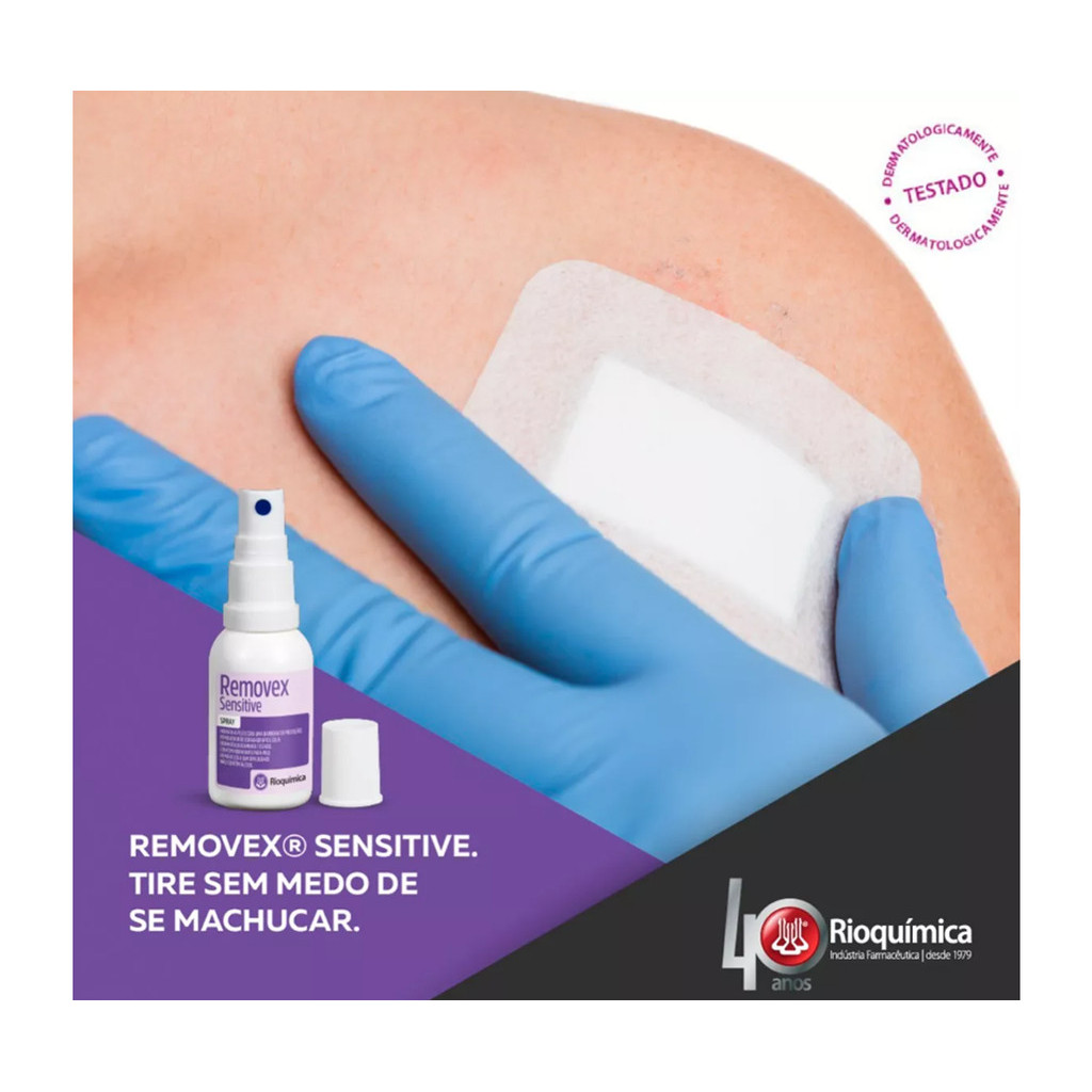 Removex removedor de curativos e cola 30ml Spray Rioquimica Removedor de curativos Removex Sensitive PRODUTO ORIGINAL E DE QUALIDADE COM ANVISA E INMETRO ENVIO RÁPIDO E NOTA FISCAL Desenvolvido com a finalidade de facilitar a retirada do esparadrapos, curativos e resíduo de cola sem dor. O produto também pode ser utilizado para retirada de curativos tipo filme, entre outras utilidades. Removex Sensitive 30ml Removedor de curativos livre de éter. Especialmente formulado para a retirada de curativo, de adesivos e resquícios de cola. Formulado de derivados minerais e emolientes. Inodoro. Não arde. Seca rapidamente. Livre de éter. Dermatologicamente testado. Indicado para peles sensíveis.