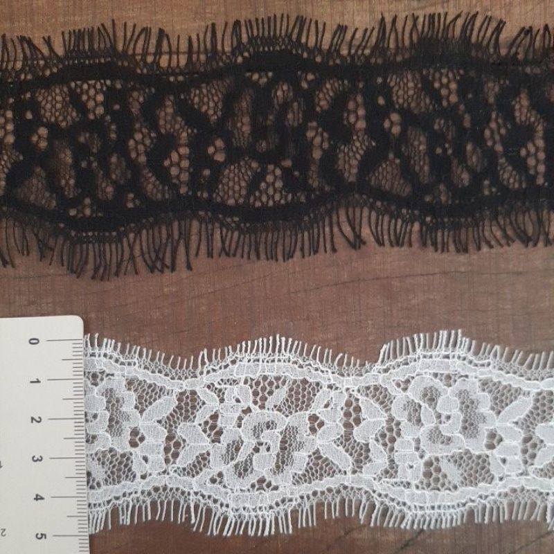 Renda chantilly ótima qualidade para confecções, artesanatos em geral. 100% nylon cor : branca e preta largura : 5 cm pacote: 6 metros ou 3 metros
