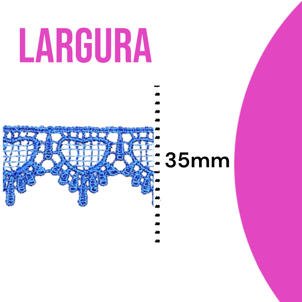 Renda de Guipír CHL-590 💚 ENVIO RÁPIDO 💚 USE SEU CUPOM DE FRETE GRÁTIS 💚 PARCELE SE JUROS´ ❓ FICOU COM DÚVIDAS? Nos chame no chat CARACTERÍSTICAS DO PRODUTO: Peça com 13,7 Metros Largura: 3,5 cm Composição: 100% Poliéster Várias Cores Ideal para acabamentos em roupas, cama, mesa, banho e artesanatos.