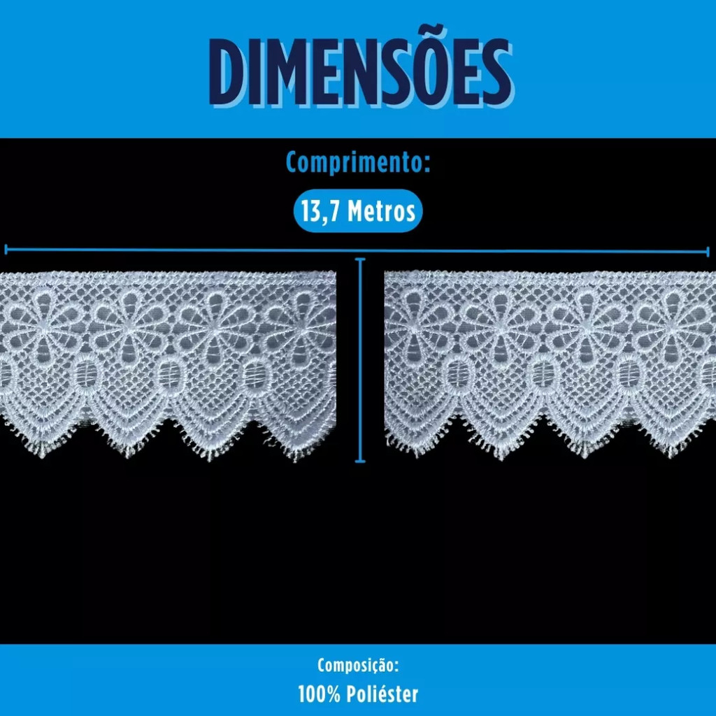 | Renda Guipir CHL-133 - 6.0 Cm - Rolo C/13.7 Metros Cor:Branco este produto | R$ 71,99 | 26% | 4.9/5 | 11 |