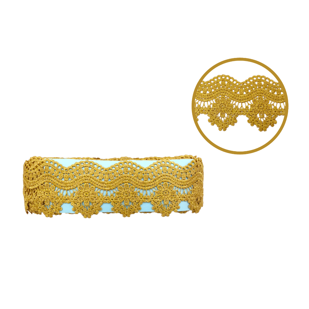 Renda Guipir Sa551 - Larg: 7,00cm - Dourada - 13,70 Mts Decoração Artesanato