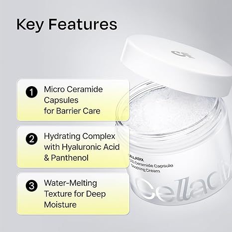Cápsula de ceramida de celula 131 Creme, 95mL RENOVADO) Celadix Trouble Ceramida RESTORE SEU BARRIADOR DE PELE: Pesquisa científica confirma que a aplicação de colesterol, ceramidas e lipídios em uma proporção de 1:3:1 reabastece topicamente os lipídios essenciais, levando a uma barreira revitalizada da pele e melhor retenção de umidade. FÓRMULA DE ÁCIDO HIALURÔNICO AVANÇADO: Infundido com ácido hialurônico patenteado, este creme acalma a pele irritada e combate o ressecamento e a produção excessiva de óleo, promovendo uma tez equilibrada. HIDRATAÇÃO LIVRE DE ÓLEO: Adeus ao entupimento de poros que exacerbam problemas de pele sem óleo. O CREME RECOVERY 131 oferece hidratação profunda sem contar com ingredientes à base de óleo. PELE SENSÍVEL: Nosso creme mantém um nível de pH de 5,5, tendo realizado com sucesso com testes de sensibilidade da pele. É formulado para peles sensíveis e todos os tipos de pele. É formulado para se adequar à pele sensível, bem como a todos os tipos de pele. Uso de toner, soro ou ampola.MODO DE USAR: Aplique suavemente após o toner, soro ou uso de ampola. Para maior conforto, use sempre que sua pele estiver faltando umidade.