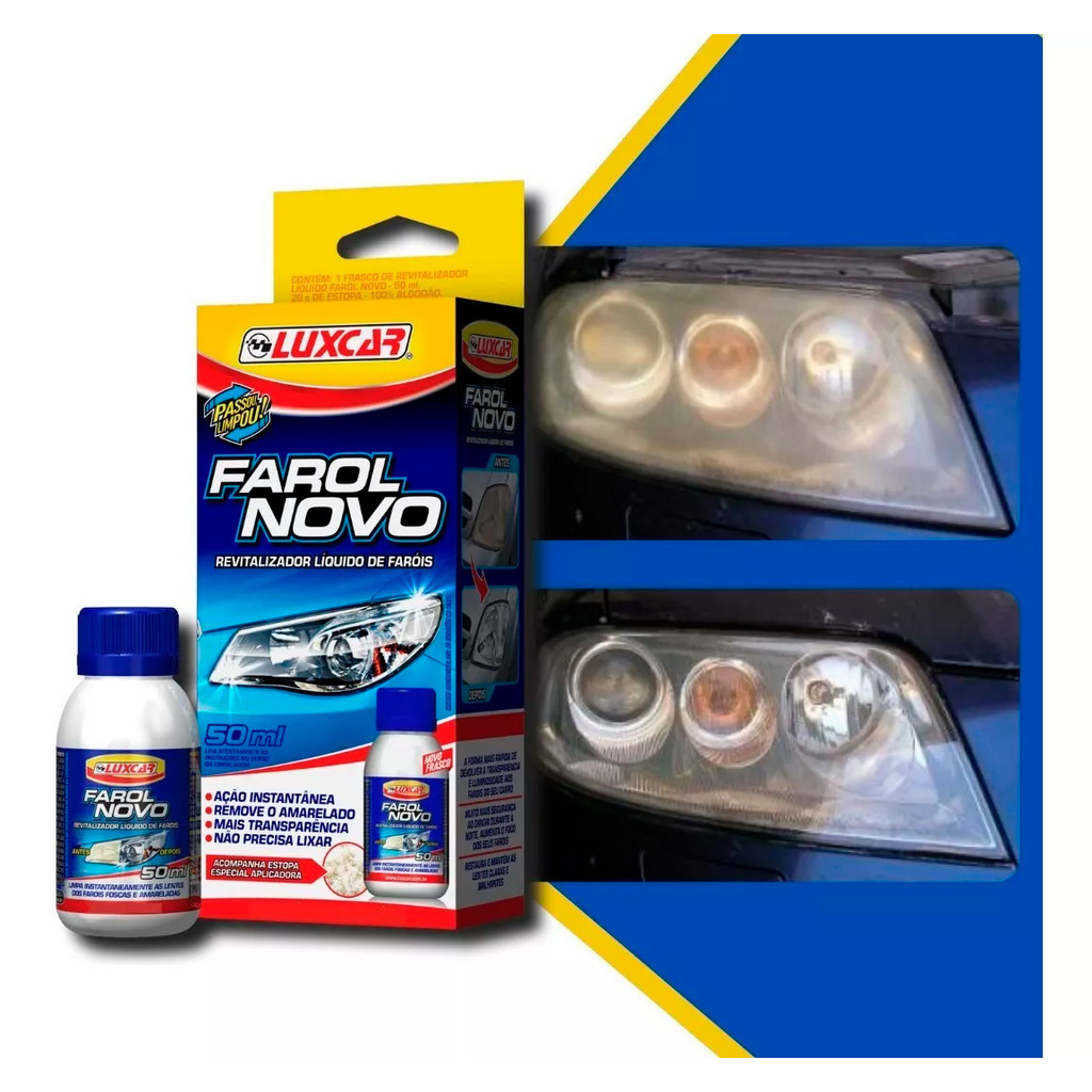 Renovador Revitalizador Liquido 50ml Farol Novo Luxcar Limpa E Restaura Fácil