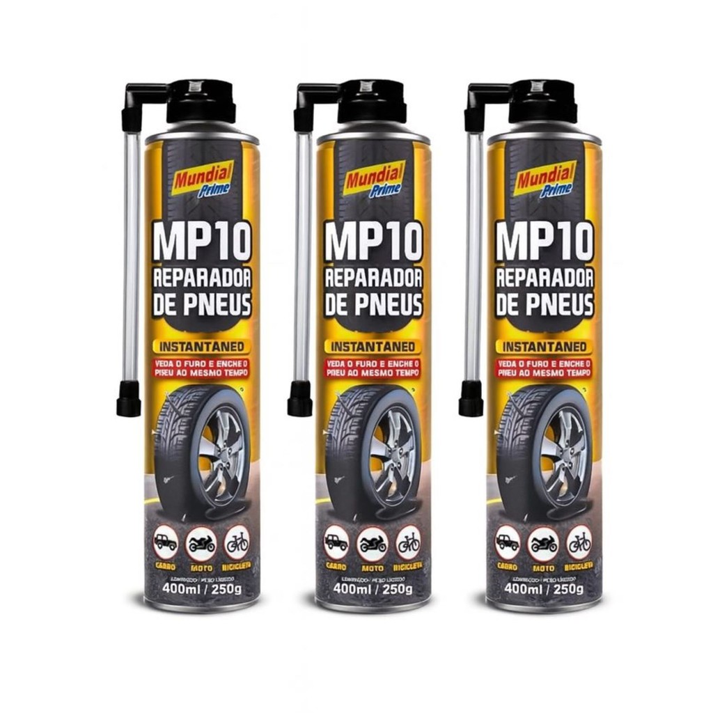 Reparador de Pneu Furado Spray Instantâneo Carro Moto Bicicleta MP10 400ml