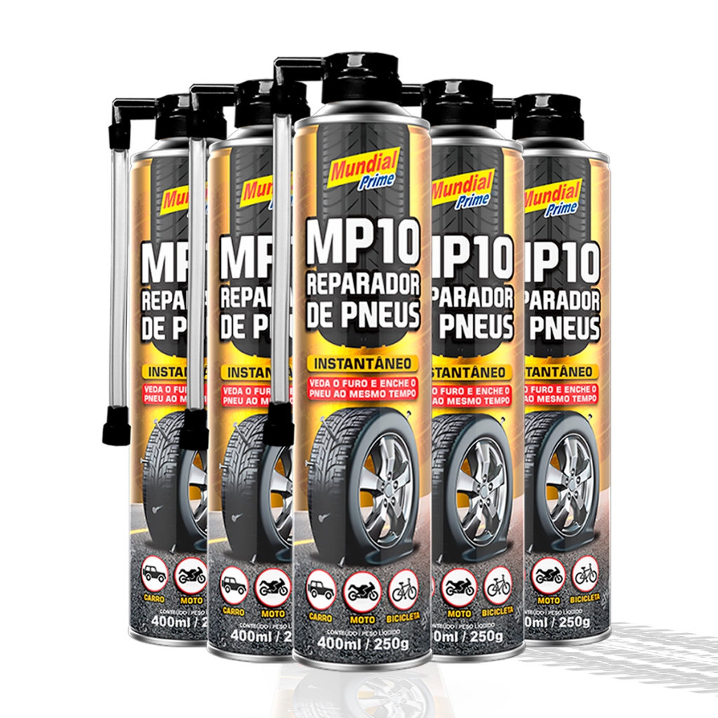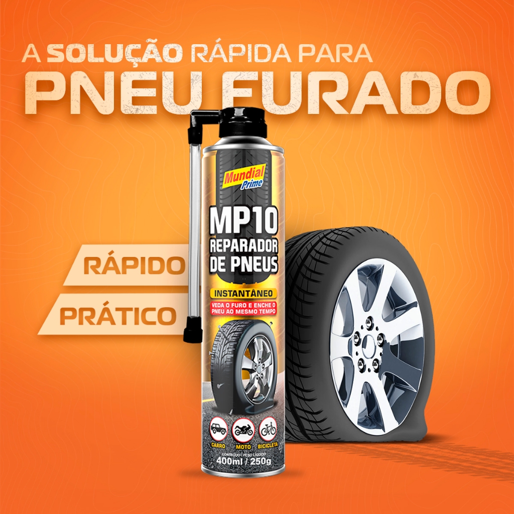 Reparador de Pneu Spray Carro Moto Bicicleta 400ml MP10 Mundial Prime Pneu Furado Segurança