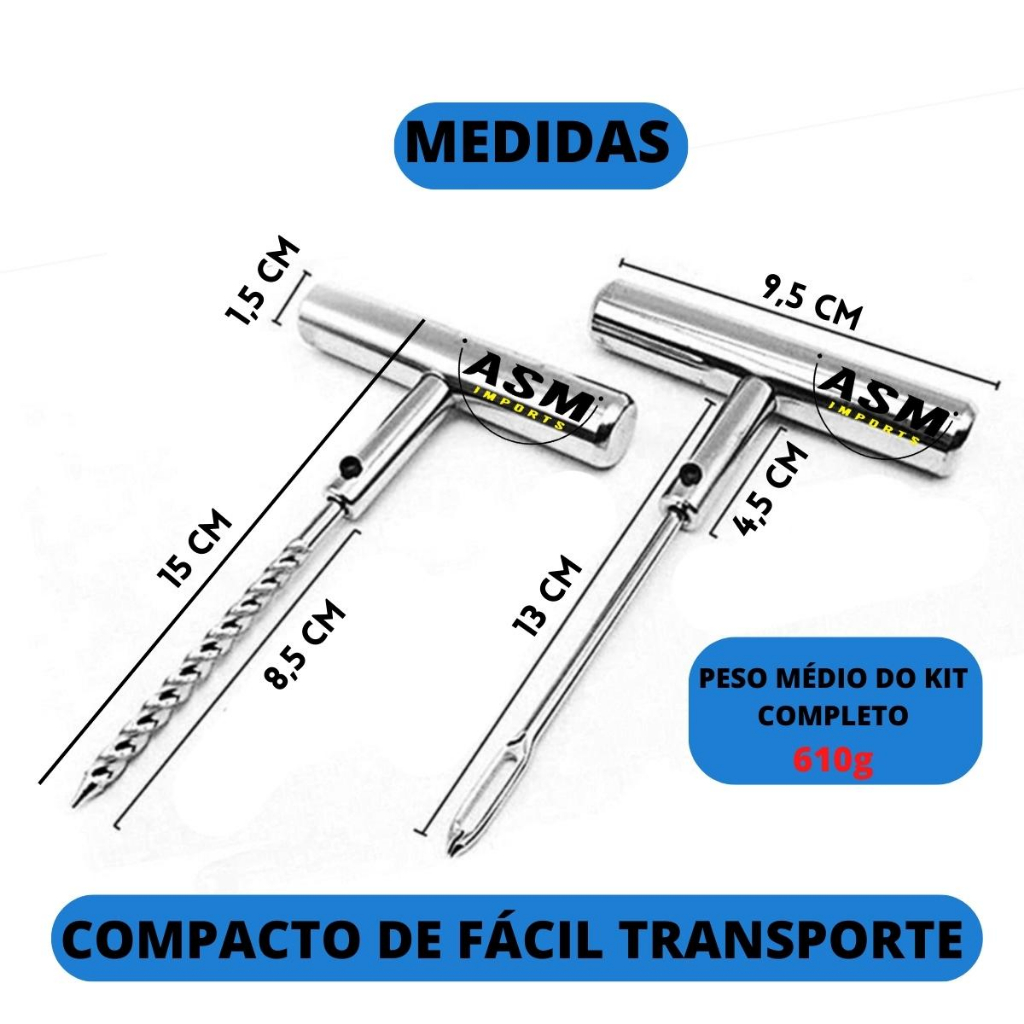 reparo de pneus com maleta remendo de pneu frio moto carro reparo macarrão = kit reparo com 22 peças kit-24 + MALETA =1 Escareador de Ferro cromado + cabo 15 cm. =1 Escareador de Ferro cromado = 1 Aplicador de reparo de Ferro cromado 15 cm + cabo. = 1 Aplicador de reparo de Ferro cromado = 1 Tudo de cola 12g = 15 Reparos (comprimento 10 cm). =1 Estilete. = 1 Maleta em plástico com travas. Cuidados: - Utilizar em pneus sem câmara. - Não repare furos maior que 5 mm. - Não repare furo na lateral. - Armazenar em local fresco. "MANUAL DE INSTALAÇÃO NAS FOTOS DO ANUNCIO" Obs:. Sempre Escarear Bem, Passar Cola E Logo Depois Retirar O Excesso De Remendos. -Sempre Cumprimos Com O Compromisso De Envios Ágil E No Prazo Determinado!!