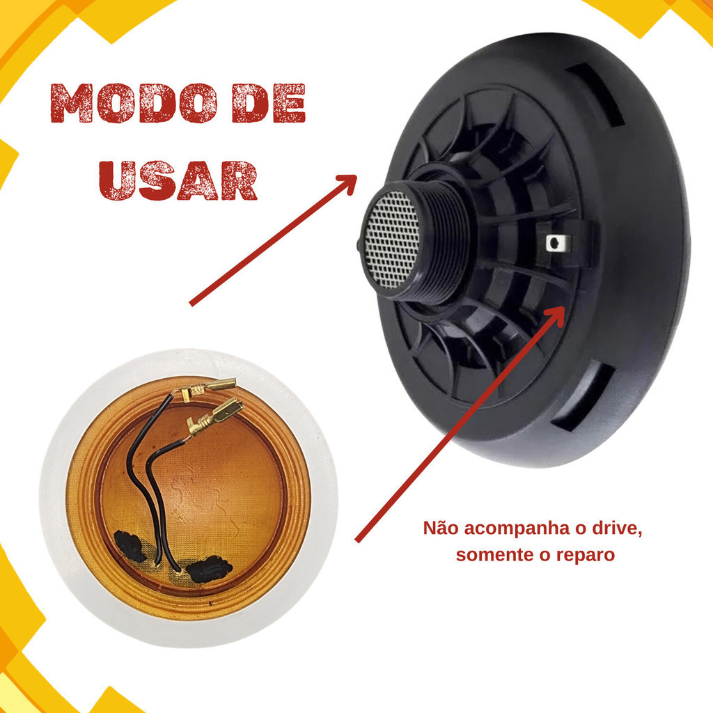 Seja bem-vindo(a) à sua Loja Produto: Reparo para Driver D-250 8 Ohms 100W - Force One Novo e Lacrado na Embalagem Original >> Características do Produto: Reparo para Driver D-250 8 Ohms - Force One >> Compatível com: D-250 Booster Rodstar B.Buster RS 215D RS 310D JBL Selenium Marca: Force One Origem: Nacional >> Especificações Técnicas: Reparo com Membrana Fenólica Bobina 100% em Cobre Resposta de Frequência: 400-9000Hz Sensibilidade 2,83v@1m: 107dB Impedância: 8 Ohms Peça para Reposição de Aparelhos Danificados Modelo Paralelo Fácil Instalação >> Informações Adicionais: Compras realizadas em nome de Pessoa Jurídica estão sujeitas à cobrança de ICMS, conforme Protocolo ICMS 41, de 4 de Abril de 2008. Consulte a Cláusula Segunda, 1° do referido Protocolo para mais detalhes. Imagens meramente ilustrativas. Produto testado por nossa equipe de profissionais. Produto com Nota Fiscal e Garantia. Não nos responsabilizamos pelo mau uso do produto. >> Envio: Produto pronta entrega. Envio realizado em até 24 horas. __________________________________________________________ Compra garantida pela plataforma Marketplace. __________________________________________________________ Palavras-chave: original, presente, dia das mães, dia dos pais, dia dos namorados, dia das crianças, carnaval, natal, páscoa, fim de ano, ano novo, férias, feriado, barato, bonito, lançamento.