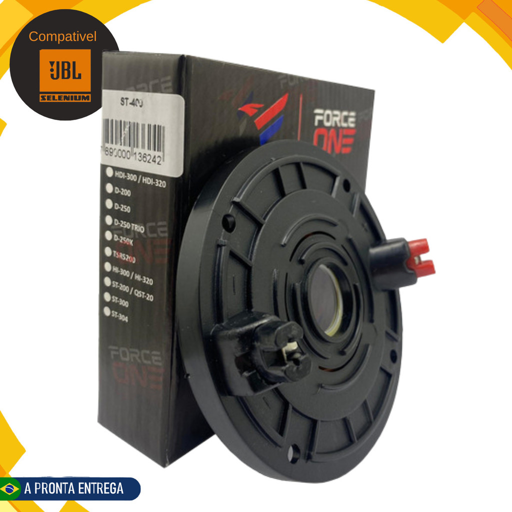 Seja bem-vindo(a) à sua Loja! Produto: Kit com 2 Unidades - Reparo Musical Para Tweeter Compatível Selenium ST-400 8 Ohms - Force One NOVO, LACRADO NA EMBALAGEM ORIGINAL O Kit de Reparos Musicais para Tweeter ST-400 da marca Force One é a escolha ideal para reposição em sistemas de som, compatível com modelos de tweeter como Super Tweeter ST-400 da JBL e Selenium. Produzido com materiais de alta qualidade, este kit com 2 unidades oferece excelente desempenho e fácil instalação, garantindo a restauração do som original do seu equipamento. >> Características do Produto: Compatibilidade: Super Tweeter ST-400, JBL, Selenium Reparo Fenólico de alta durabilidade Potência RMS: 100W Impedância: 8 Ohms Resposta de Frequência: 400 ~ 20000Hz Modelo paralelo, peça de reposição para aparelhos danificados Fácil instalação >> Especificações Técnicas: Marca: Force One Origem: Nacional >> Conteúdo da Embalagem: 2x Unidades de Reparo para Tweeter Compatível com ST-400 - Force One Atenção: Antes de adquirir, verifique a compatibilidade com seu equipamento. Imagens meramente ilustrativas. Produto com Nota Fiscal e Garantia. Não nos responsabilizamos pelo mau uso do produto. >> Envio: Produto pronta entrega ENVIO REALIZADO EM ATÉ 24 HORAS COMPRA GARANTIDA PELA PLATAFORMA MARKETING PLACE. Palavras-chave: original, presente, dia das mães, dia dos pais, dia dos namorados, dia das crianças, carnaval, natal, páscoa, fim de ano, ano novo, férias, feriado, barato, bonito, lançamento, tweeter, áudio profissional, Force One, ST-400, reposição, compatível, JBL, Selenium, kit com 2 unidades.