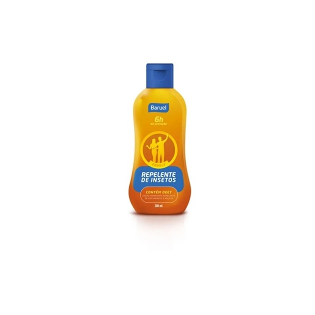 Repelente de Insetos Baruel possui alta eficácia, rico em Deet e oferece até 6 horas de proteção para a pele das crianças contra picadas de insetos, como o Aedes Aegypti, transmissor de doenças como dengue, zika e chikungunya. AÇÃO/ATIVOS:Sua fórmula exclusiva é hidratante e de fácil espalhabilidade. Não é pegajoso e oferece toque seco. Fórmula livre de corantes e parabenos. Hipoalergênico e dermatologicamente testado. Uso permitido a partir de 2 anos de idade. Imagem meramente ilustrativa. O produto pode ter variação de cor ou desenho, porém as características gerais são as mesmas especificadas na descrição do produto. Modo de uso: Agite bem a embalagem antes de usar e aplique o repelente nas regiões expostas da pele, massageando suavemente até completa absorção. Reaplique a cada 6 horas ou após o contato com a água e transpiração excessiva.ESTE ANÚNCIO CONTÉM: 03 UNIDADES DE BARUEL FAMILY DEET REPELENTE LOÇÃO 200ML