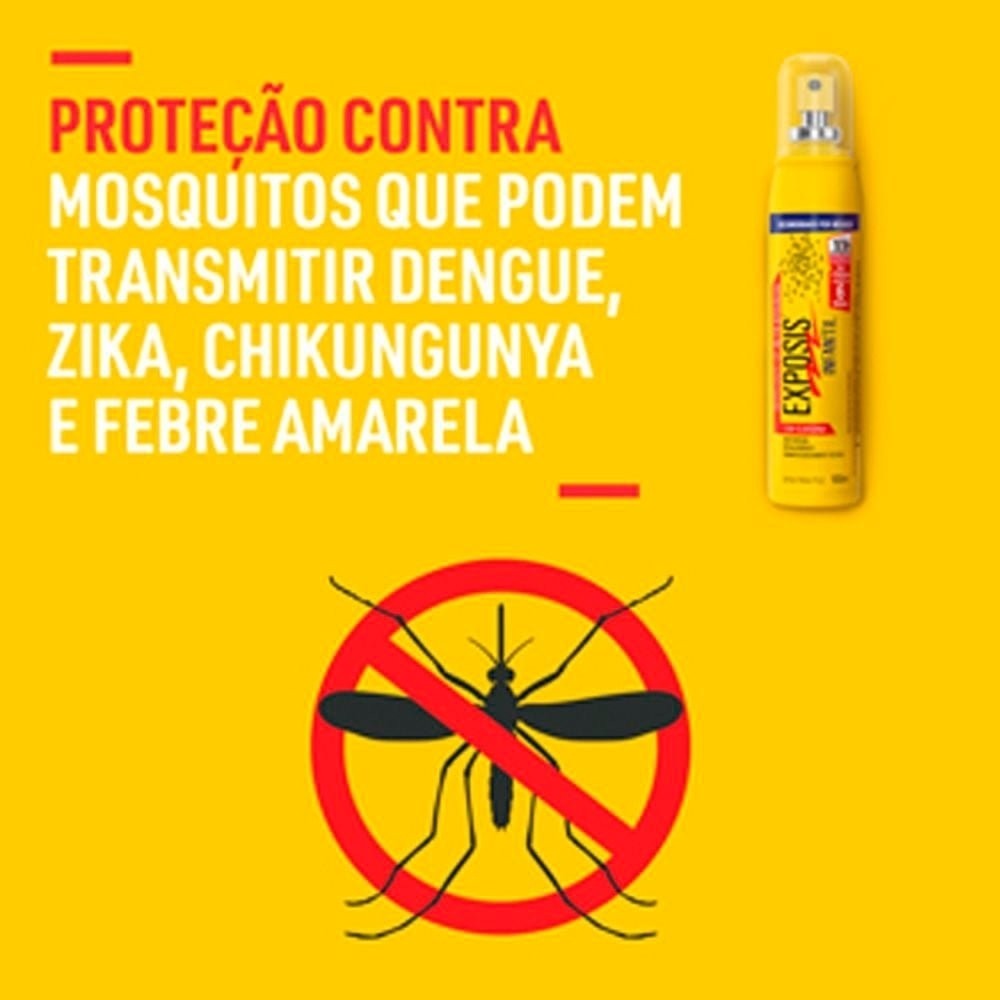 Características do produto: Marca: Exposis Volume: 100ml Especificações gerais: Insetos repelidos Aedes aegypti: Dengue, Zika, chikungunya e febre amarela Aedes albopictus: Dengue, Zika, chikungunya Anófeles: Transmissor da malária Culex: Causador da filariose Modo de usar: Aplique Exposis homogeneamente por todas as partes expostas da pele, uma vez que a ação de um repelente limita-se a 4 cm de distância. Uma simples aplicação no rosto não protege a nuca, por exemplo. Reaplique Exposis de acordo com as instruções presentes no rótulo da embalagem. Protetor solar: Pode ser usado. Primeiro aplique o protetor solar, aguarde o tempo indicado por seu fabricante para que o produto seja absorvido e só então use o repelente. Tipo de roupa: Evite roupas escuras e agarradas ao corpo. Dê preferência a roupas claras, compridas e afastadas do corpo. Se usar roupas curtas, vestidos ou sandálias, aplique o repelente nas pernas e pés. Cremes e maquiagem: Primeiro aplique cremes e maquiagem e, depois, use Exposis. Não use perfume Perfumes podem provocar alergias e atrair insetos. Prefira produtos sem fragrâncias, tais como desodorantes sem perfume, sabonetes neutros e xampus sem cheiro. Atenção: Repelentes podem danificar: Resina, acrílico, esmalte, tecidos, couros, entre outros, provocando a inutilização destes materiais. Fornecedor: SC Johnson