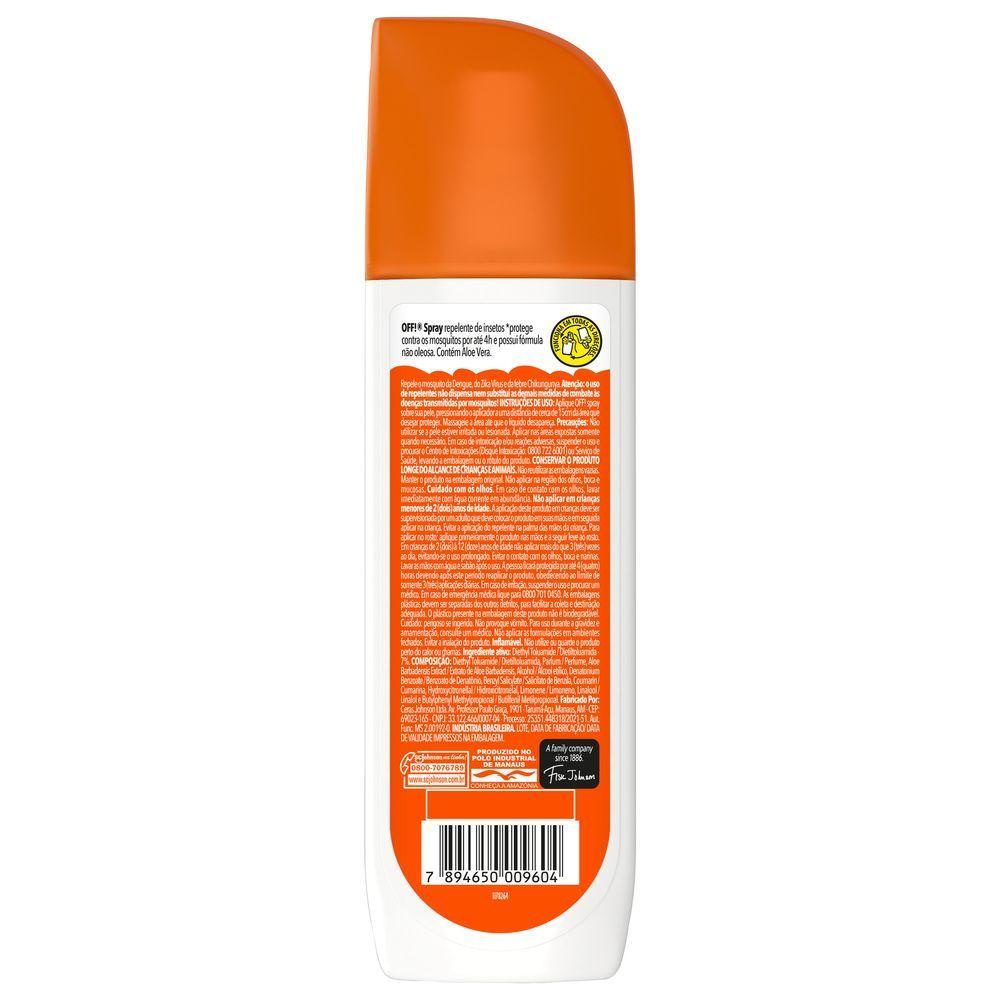 OFF Spray 170ml. Não Oleoso. Fórmula com Aloe Vera. Garante proteção contra mosquitos, inclusive contra o aedes aegypti, mosquito que pode transmitir o Zika vírus, a Dengue, a febre Chikungunya e a Febre Amarela Protege por até 4 horas. Prático de usar. Dermatologicamente testado.