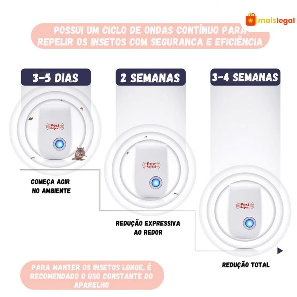 Repelente Eletrônico Ultrassônico Mosca Pernilongos Baratas Morcegos repele e Espanta Ratos bivolt MWQ