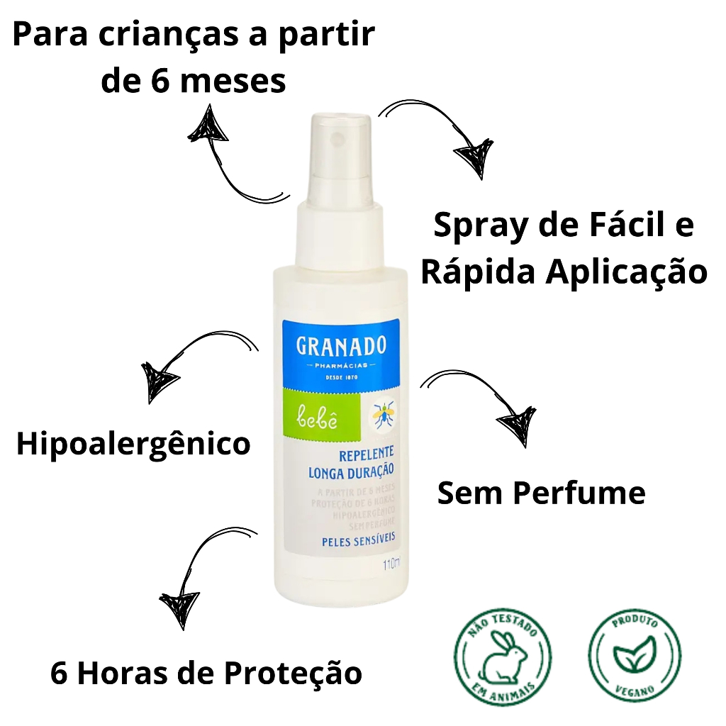 Repelente Infantil Longa Duração Bebê Peles Sensíveis Granado Spray Sem Perfume - 110ml