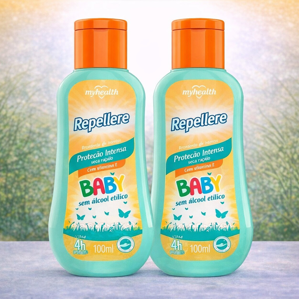 🦟 Repelente Repellere Baby 100ml – Proteção Intensa e Suave para Bebês O Repellere Baby foi desenvolvido especialmente para proteger os pequenos contra mosquitos e pernilongos, com fórmula suave, sem álcool etílico e dermatologicamente testada. Ideal para o uso diário, oferece proteção eficaz por até 4 horas, garantindo mais tranquilidade para pais e cuidadores. ✅ Principais Benefícios 👶 Indicado para bebês e crianças 🛡️ Proteção intensa contra mosquitos e pernilongos ⏱️ Duração de até 4 horas 🌿 Sem álcool etílico – mais suave para a pele sensível 💧 Textura leve, fácil de espalhar 🧴 Embalagem prática de 100ml 👨⚕️ Dermatologicamente testado 🧾 Modo de Uso Uso externo. Aplique o produto na palma da mão e espalhe uniformemente nas áreas expostas da pele. Evite aplicar em excesso. Reaplique a cada 4 horas ou após contato com água ou transpiração excessiva. ⚠️ Não aplicar em olhos, boca, narinas, ferimentos ou mucosas. ⚠️ Precauções Importantes Não utilizar em crianças menores de 6 meses Aplicação em crianças deve ser feita por um adulto Evite aplicar na palma das mãos da criança Em caso de irritação, suspenda o uso Conservar fora do alcance de crianças e animais 📦 Conteúdo da Embalagem 01 unidade – Repelente Repellere Baby 100ml