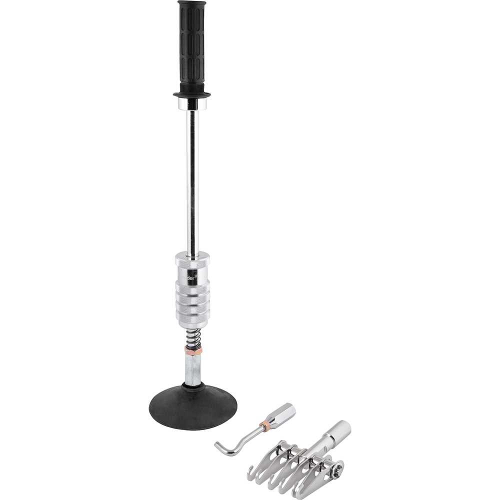 Repuxadeira manual para martelinho de ouro, VONDER Possui batedor com mola que auxilia no trabalho, diminuindo o esforço do operador. Indicada para uso em martelinho de ouro, para desamassar latarias. Especificações Técnicas: Material (tipo/composição): Metálico Força de tração: 5 kgf Diâmetro da ventosa: 125 mm Comprimento total: 550 mm Diâmetro do batedor: 47 mm Diâmetro do corpo do repuxador: 15 mm Diâmetro do punho: 31 mm Massa aproximada (peso) (kg): 2,2 kg Conteúdo Da Embalagem: 1 Repuxadeira. Acompanha: 1 ventosa Ø 125 mm e 2 garras para repuxo.