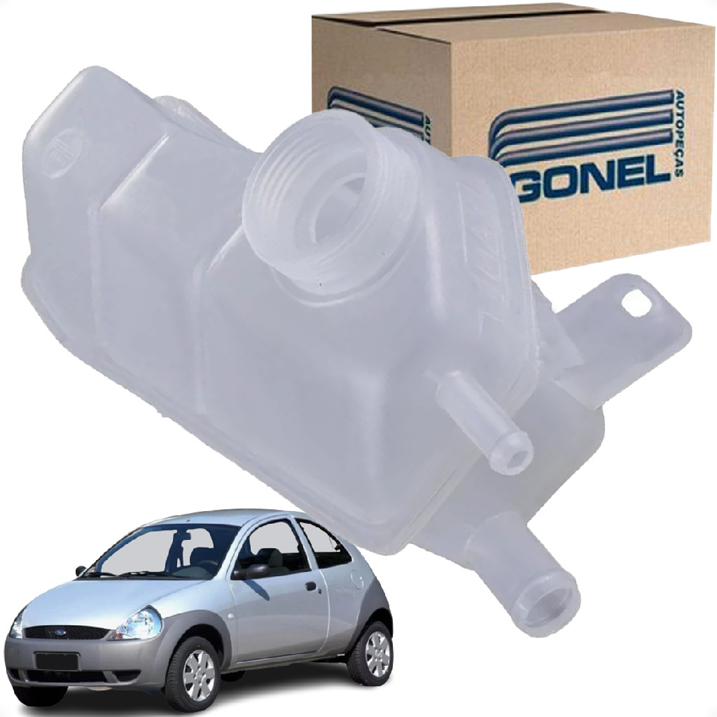 Este anúncio contém: 01 (um) Reservatório de água do radiador sem tampa - Gonel. Aplicável nos seguintes veículos: Montadora: Ford; Veículo: Ka; Motor: Endura; Ano de Fabricação: 1997, 1998, 1999, 2000, 2001, 2002, 2003, 2004, 2005, 2006, 2007; Veículo: Ka; Motor: Rocam; Ano de Fabricação: 2008, 2009, 2010, 2011, 2012. Obs: 2 bicos. Referência Cruzada: 98KU.8K2118.AA. Produto de Alta Resistência e Durabilidade , Produzida em Plástico resistente a alta temperatura, e a espessura de parede e peso, igual a norma das montadoras. Sobre a marca: A Gonel é uma empresa especializada no segmento da reposição de peças automotivas, que alinha o conhecimento de mercado à capacidade industrial. Fundada no Brasil em 1987, atualmente é uma das mais tradicionais fabricantes de autopeças do Brasil. Focada no fornecimento de reservatórios, tampas e mangueiras, nas mais diversas aplicações para as linhas leves e pesadas, de veículos nacionais e importados, a Gonel fabrica seus produtos sob rigoroso sistema de gestão de qualidade, atendendo as exigências do mercado em que atua e buscando excelência na fabricação de mais de 300 itens. Sobre a empresa: Somos um distribuidor de auto peças, com mais de 20 anos de experiência e presença nacional. Todos os produtos comercializados diretamente dos fabricantes, garantindo assim sua procedência. Dúvidas frequentes: O Produto é novo? Sim. Nós trabalhamos apenas com produtos novos, e com garantia. O Produto é original? O produto é 100% Novo e Original com Nota Fiscal ! Somos distribuidores autorizados pelo fabricante e asseguramos a qualidade e a originalidade do produto a preços competitivos. Tem garantia? Sim. Têm 180 dias de garantia de fabrica contra defeitos de fabricação. O produto é igual ao da foto? Sim. Todas as fotos são fiéis ao que você receberá, e para facilitar a sua compra, ilustramos também o veículo em que se aplica o produto. Em quanto tempo recebo minha compra? Seus produtos serão enviados em até 24 horas úteis após a confirmação do pagamento. Como faço para saber se o produto deste anúncio se aplica ao meu veículo? Na descrição do anúncio você encontra todas as informações das aplicações corretas, se a informação que precisa não está na descrição do anúncio, deixe sua pergunta que nossa equipe está preparada para solucionar qualquer dúvida. Instalação: Recomendamos que a instalação deste produto seja realizada por um profissional qualificado. Tem alguma dúvida sobre o produto ou sobre a compra? Deixe sua pergunta abaixo, que responderemos prontamente.