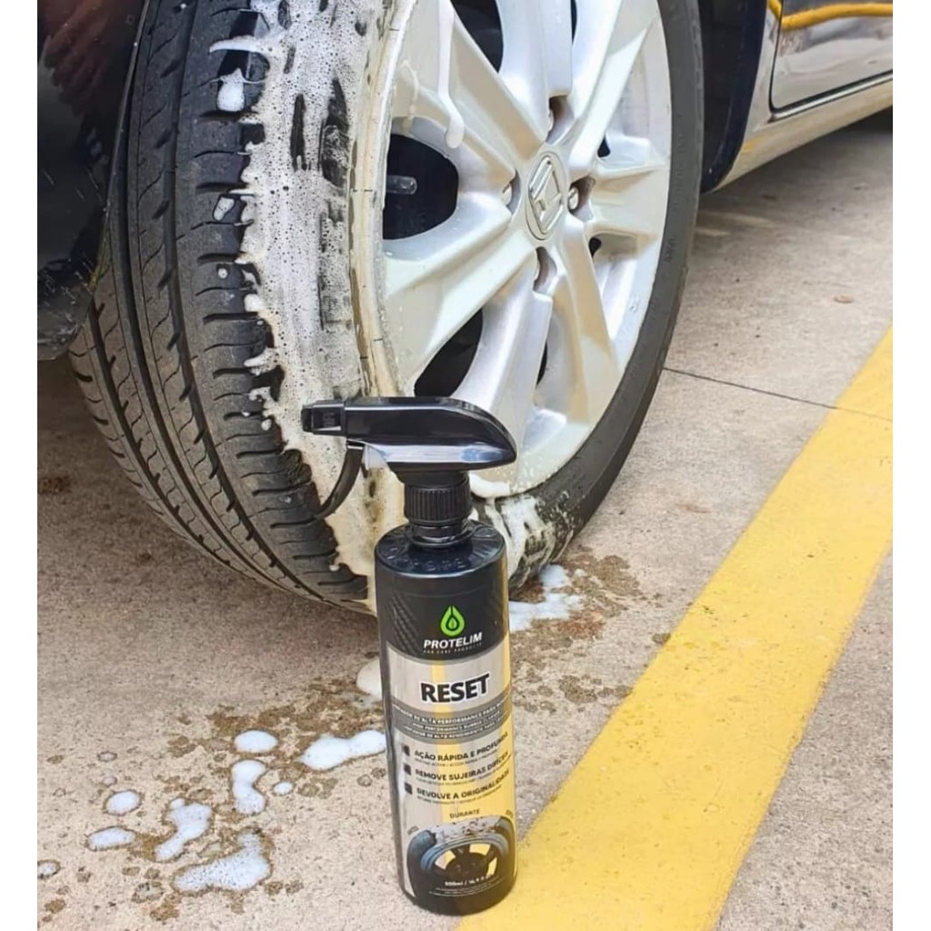Um limpador de alta performance para borrachas, com ação rápida e profunda, capaz que remover até as sujidades mais difíceis, devolvendo a originalidade da superfície!Sabe aquele aspecto acinzentado do pneu? O Reset é a solução para esse problema!A principal função do Reset é limpar todos os tipos de borrachas. Sua ação é extremamente rápida e eficaz.A ação do Reset é baseada em flotação, o que significa que a sujeira é deslocada da superfície. Ele age por meio de uma espuma densa e alcalina que faz boa parte do trabalho pesado.- Ação ultra rápida e profunda- Remove sujeiras difíceis- Devolve a originalidadeMODO DE USAR:1. Coloque a válvula spray espumante de RESET na posição ON e o posicione entre 15 e 20 centímetros de distância da superfície a ser limpa.2. Pressione o gatilho liberando o jato de espuma, de forma a cobrir todo o pneu ou borracha.3. Deixe agir por cerca de 30 a 60 segundos. Perceba que a espuma muda de cor: é o momento em que a mágica acontece. RESET age profundamente, removendo toda sujeira impregnada.4. Para melhor performance, esfregue a superfície com uma escova.5. Enxague com água em abundância.6. Se necessário, repita a operação.