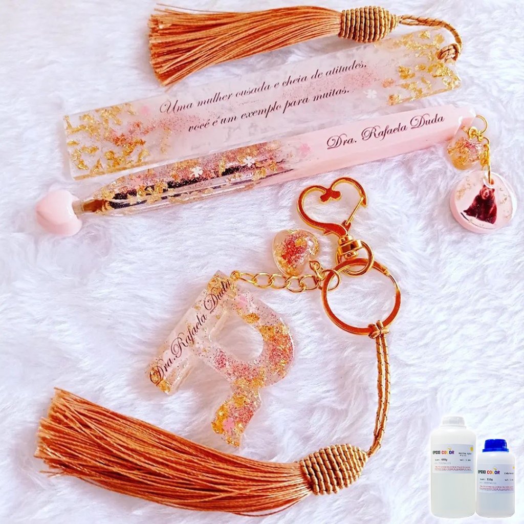 Resina Epóxi bi componente, que consiste em um sistema indicado para aplicações onde se deseja um aspecto vítreo, pois após seco forma uma lente rígida transparente com alto brilho. Este endurecedor, apresenta ótima resistência a umidade, sendo que durante a cura não ocorre a formação de nevoa sobre a peça ("blushing"), favorecendo a secagem a frio, não necessitando o uso de mesas ou estufas térmicas. Contém: 517g de Resina + 233g de Endurecedor De baixa e média viscosidade, e de baixa espessura (até 1cm) Secagem/Desmolde padrão: 24hs ou 48hs (peças finas) Rigidez mínima: 3 dias ou 5 dias (peças finas) Tempo de cura total: 7 dias Atenção: O excesso de pigmento/corante afeta a secagem. Aplicações: Resinagem em diversas superfícies metálicas pela ótima aderência, dentre estas, chaveiros, bottons, medalhas, troféus, bijuterias, placas, artigos religiosos, além da aplicabilidade nos mais diversos substratos onde se deseja um acabamento brilhante e rígido. Modo de uso: Em uma superfície plana e nivelada (ex: vidro, mdf, tampo de acrílico, etc) fixe bem as peças a serem resinada com alguma cola de contato por exemplo. A proporção de mistura, é de 100 partes de resina para 45 partes de endurecedor (ambas em peso) use balança de precisão. Fazer a mistura com uma haste firme (ex. palito de sorvete), por cerca de 3 minutos mantendo uma velocidade constante até que os dois componentes fiquem bem misturados, ou seja, quando a mistura está totalmente incolor, sem nenhum tipo de turvação. Despeja a resina aos poucos na peça para que ela escorra de maneira uniforme. Proteger as peças e deixar secando por no mínimo 24 horas. Secagem/Desmolde padrão: 24hs ou 48hs (peças finas) Rigidez mínima: 3 dias ou 5 dias (peças finas) Tempo de cura total: 7 dias Atenção: O excesso de pigmento/corante afeta a secagem. EPOXICOLOR Resinas e Tintas São Bernardo do Campo - SP