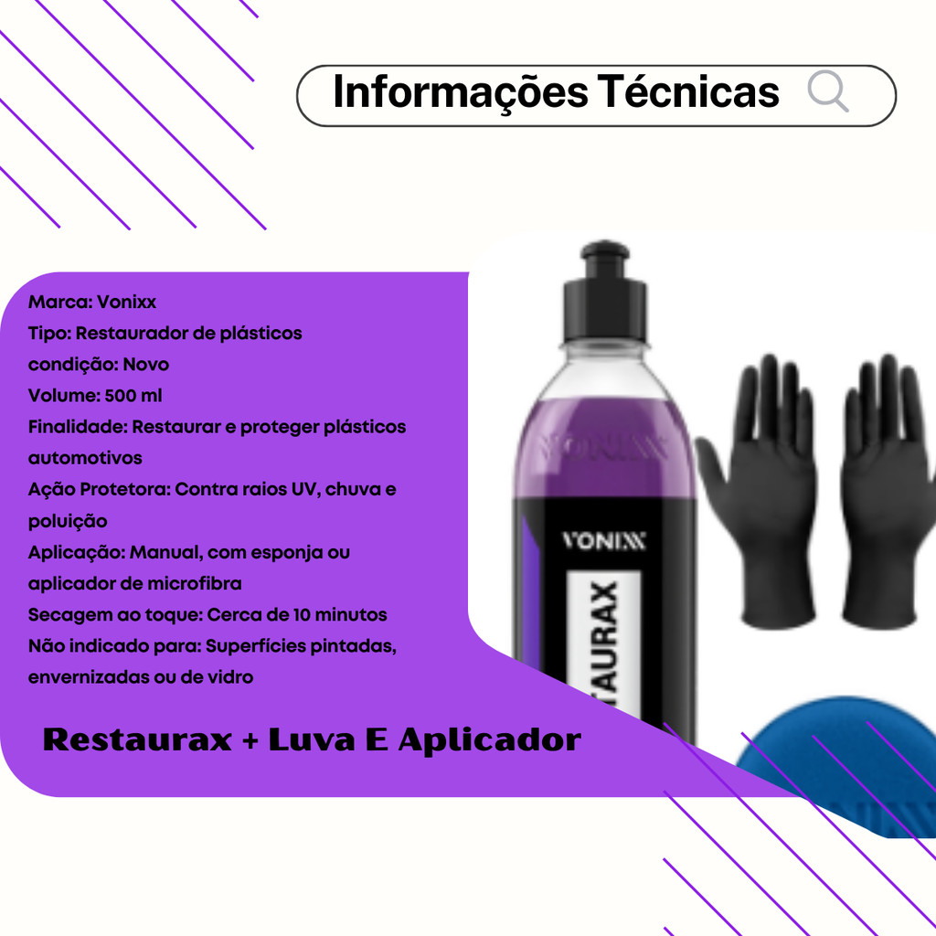 Restaurax Restaurador Plásticos Automotivo Kit Vonixx + Luva
