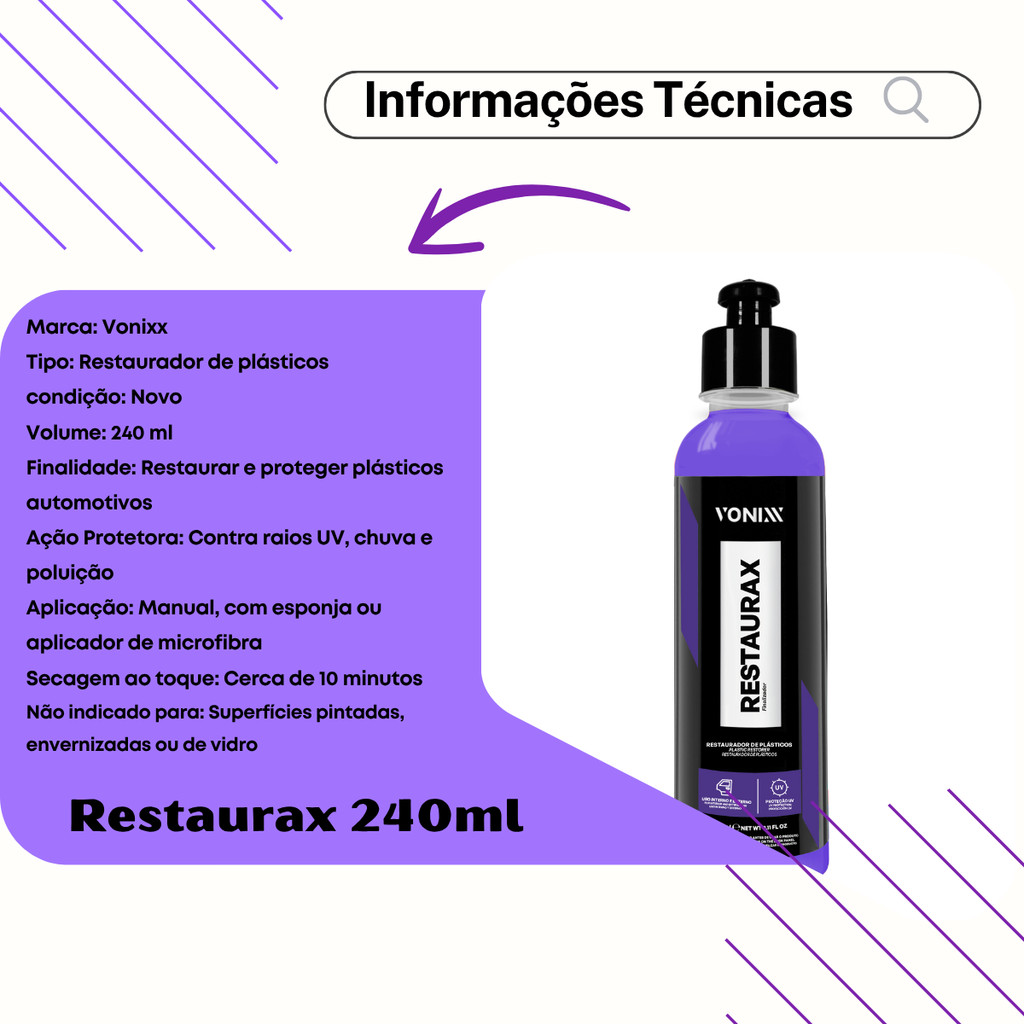 Restaurax Vonixx 240ml - Renova e Restaura Superfícies Plásticas