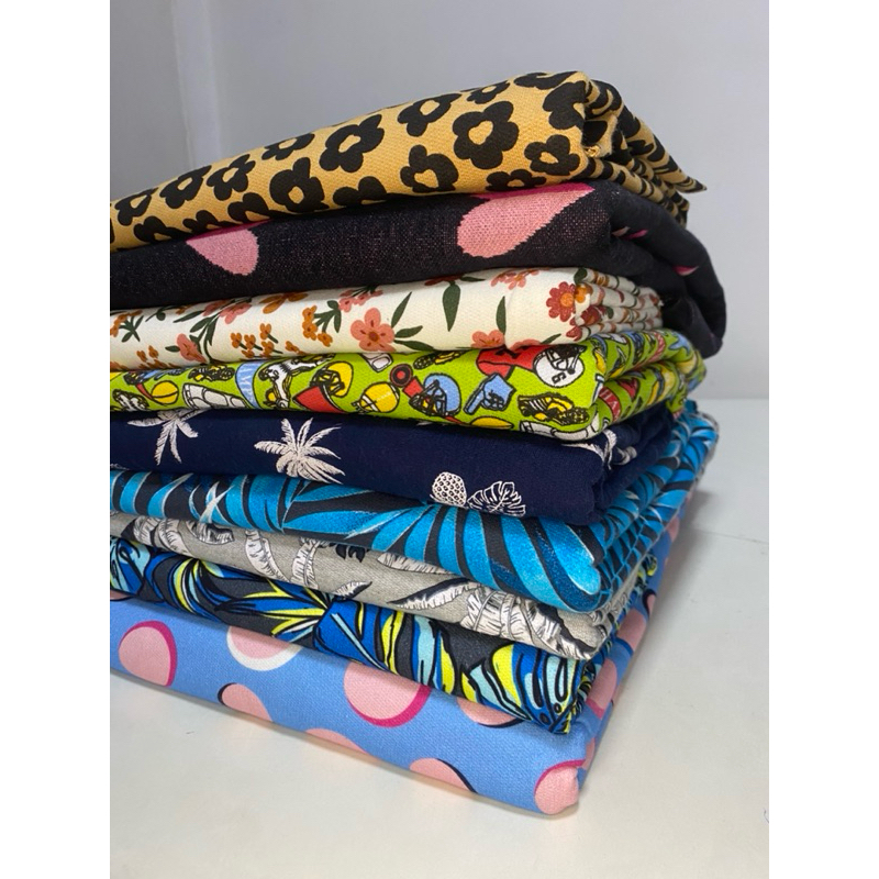 Retalhos de Malha Moletinho Estampado Moletom Careca p/ Casacos, Vestidos, Moda Inverno (1 KG = 2 METROS).