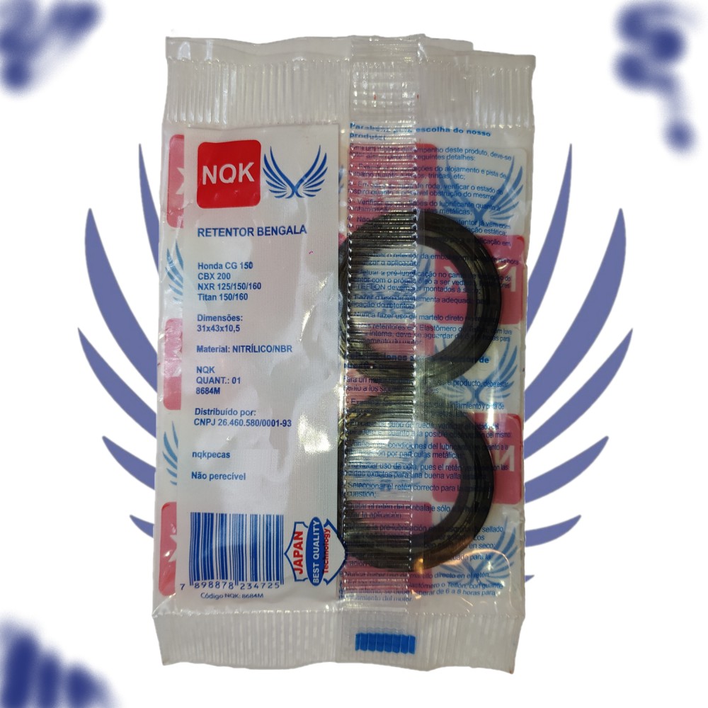 Retentor De Bengala Pacote Econômico 10 Peças NQK Original Aplicação: cbx 150/150 1989 / 1994 cbx 200/200 1992 / 2003 cg 150/150 a partir de 2004 cg 160/160 a partir de 2016 nxr 125/125 a partir de 2003 nxr 150/150 a partir de 2003 nxr 160/160 a partir de 2015 pcx 150/150 a partir de 2012 sh mode 125/125 2014 / 2015 xl 125/125 1987 / 1996 xlr 125/125 1997 / 2002 xre 190a/190 a partir de 2016 Sundown hunter 125/125 2004 / 2009 Sundown max 125 se, sed/125 2004 / 2012 Dimensões: 31x43x10,5 mm Part Number (Código do Fabricante): 4948 Garantia de 90 dias Recomendamos que o produto seja instalado por profissionais da área, mal uso ou instalação indevida causa a perda da garantia. Sobre a FNX: É uma empresa com 27 anos de mercado, fundada em Minas Gerais, com alcance em todo território nacional, tendo em seu catálogo mais de 3000 itens, desses, mais de 300 são da própria marca, inclusive a linha de produtos NQK, esta que tem qualidade de linha de montagem das maiores fábricas do mundo.