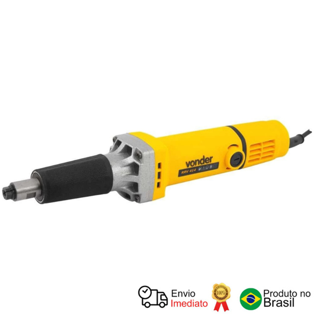 Retificadeira reta 400 W 1/4", RRV 414 220 V~ VONDER Com estrutura compacta e prática de usar, possui velocidade variável, que pode ser adequada a diferentes necessidades de uso através do botão de ajuste. Indicada para retíficas, matrizes, moldes, furos e engrenagens. Especificações: Modelo: RRV 414 Potência: 400 W Diâmetro da pinça da retificadeira: 1/4" - 6,3 mm / 6 mm Tipo de velocidade: Variável Rotações por minuto (rpm): 15.000/min - 26.000/min Segue norma: ABNT NBR IEC 60745-1 e ABNT NBR IEC 60745-2-14 Tensão (V~): 220 V~ Frequência (Hz): 50 Hz / 60 Hz Massa aproximada (peso) (kg): 1.876 kg Conteúdo da Embalagem: 1 Retificadeira reta. Acompanha: 1 pinça 1/4" e 1 pinça 6 mm.