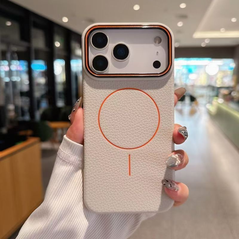 Retro Lichia Couro Padrão Magnético Caso De Telefone Adequado Para iPhone 17 16 15 14 13 12 11 Pro Max Plus 17 Ar Capa T