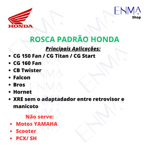 RETROVISOR MODELO KAWASAKI Z400 HASTE CONVENCIONAL FIXA LENTE CONVEXA AZUL CLARO ROSCA HONDA LANÇAMENTO EXCLUSIVO GVS LENTE FURTA COR - AZUL CLARO ESPECIFICAÇÕES TÉCNICAS: - Lente convexa exclusiva; - Haste Fixa - Maior campo de visão ao condutor; - Adaptável em todos modelos de moto padrão Honda (Rosca Universal M10); - Carcaça e corpo produzido em nylon na cor preta; - Alinhamento perfeito entre o retrovisor e o guidão - Dimensão e peso idêntico ao original; - Baixo índice de trepidação; OUTRAS INFORMAÇÕES: - Design Original; - Encaixe perfeito; - Fácil instalação; - Excelente qualidade e durabilidade garantida; - Fabricado no Brasil por GVS SPORT que é líder de mercado. CONTEÚDO da EMBALAGEM: - 1 par de retrovisor para moto (esquerdo/ direito). ENVIO: - Todos os itens estão disponíveis em estoque para postagem imediata. - Realizamos as postagens dos pedidos em até 24 horas após a confirmação do pedido. - Pedidos realizados Sextas Feiras após 12:00, finais de semana ou vésperas de feriados serão postados no próximo dia útil em horário comercial. - As etiquetas do envio são geradas automaticamente através da plataforma, verificar seus dados para melhor experiência de entrega. ATENÇÃO Para Instalação nos Modelos das Motos Honda 2017-2018 em diante e modelos XRE, caso haja adaptador entre o manicoto e o retrovisor, é necessário retirar o adaptador e instalar o retrovisor diretamente no manicoto. Não nos responsabilizamos pelo mau uso do produto. PRINCIPAIS APLICAÇÕES CG 160 FAN 160 Start 160 CB 300R CB 250 Twister XRE 190 XRE 300 BROS 125 BROS 150 TITAN 150 NX 400 Falcon Em caso de dúvida, entre em contato conosco! Equipe ENMA SHOP