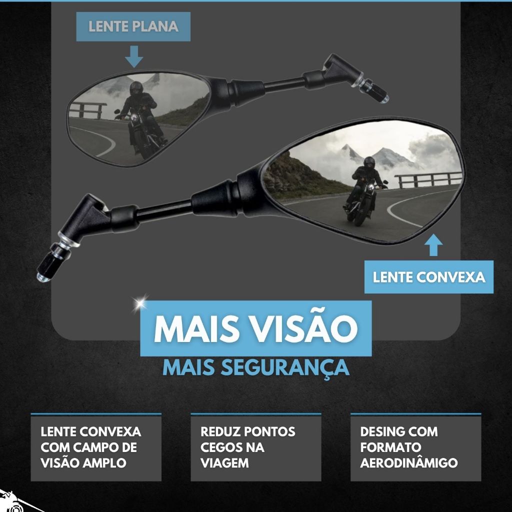 Retrovisor Modelo Bmw Moto Honda Haste Longa 360° Lente Convexa