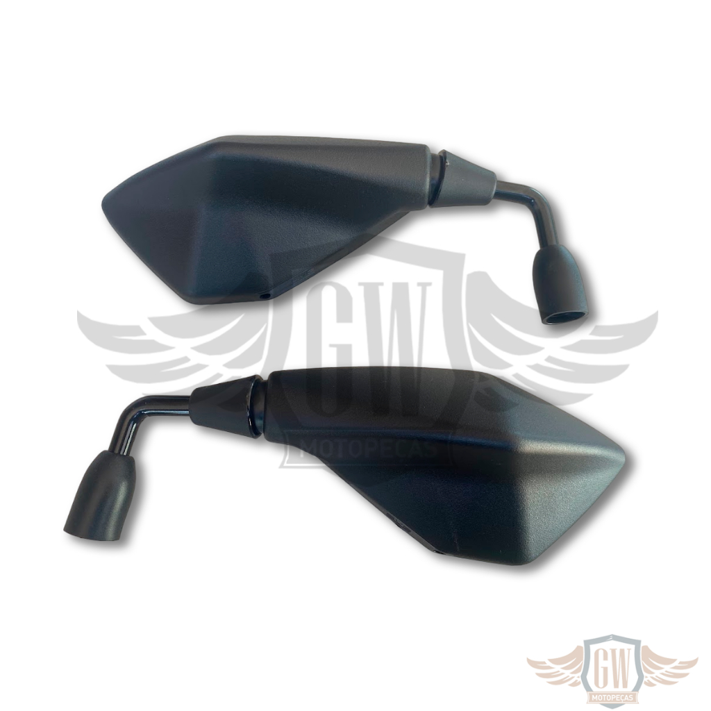 RETROVISOR RVG MAIS KAWASAKI Z400 HASTE CURTA REBAIXADA 90° FIXO YAMAHA LENTE PLANA AZUL LADOS: - Direito e esquerdo ESPECIFICAÇÕES: - Design Original (conforme fotos) - Retrovisor com a haste mais baixa que o comum, com uma angulação de 90° - Rosca Yamaha - Espelho lente plana azul - Encaixe ideal - Instalação simples - Fixo (sem giro) - Haste Curta - Haste Black - Melhor acabamento do mercado - Peso e qualidade igual ao modelo original CONTEÚDO DA EMBALAGEM: - 1 par de retrovisor para moto (Lado direito e esquerdo) ATENÇÃO: - Não nos responsabilizamos pelo mau uso do produto. - Antes de comprar certifique se seu e-mail, endereço e dados estão atualizados na Shopee. - Será com essas informações que manteremos contato com você para concluir e acompanhar a compra. POSTAGEM: - Todos os itens estão disponíveis em estoque para postagem imediata. - Realizamos as postagens dos pedidos em até 24 horas após a confirmação do pedido. - Para pedidos confirmados até as 15:30 horas, realizamos a postagem no mesmo dia. - Pedidos realizados Sextas Feiras após 15:30, finais de semana ou vésperas de feriados serão postados no próximo dia útil em horário comercial. - As etiquetas do envio são geradas automaticamente através da Shopee, verificar seus dados para melhor experiência de entrega. PAGAMENTO: - Após a notificação de pagamento, o cliente receberá um e-mail de confirmação com todas as informações e dados de contato. - Pedidos via Cartão de Débito ou Crédito têm aprovação mais rápida. - Pedidos via Boletos Bancários são usualmente compensados em até 72 horas após o pagamento. DEVOLUÇÕES: - Em caso de não comunicado ao marketplace, retorno incoerente ao que foi enviado, com ausência ou danificação das embalagens originais, indicações de mau uso ou adaptação, a GW MOTOPEÇAS se isenta da obrigação de atendimento à solicitação. ESTAMOS ANSIOSOS PARA ATENDER SUA MOTO. OBRIGADO! Equipe GW Motopeças.