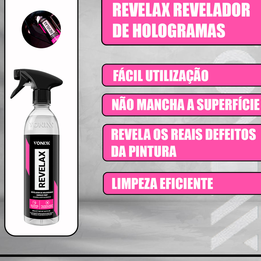 Revelax Vonixx: revela defeitos de pintura, limpa vidros e prepara para vitrificação com facilidade e sem manchar nada!