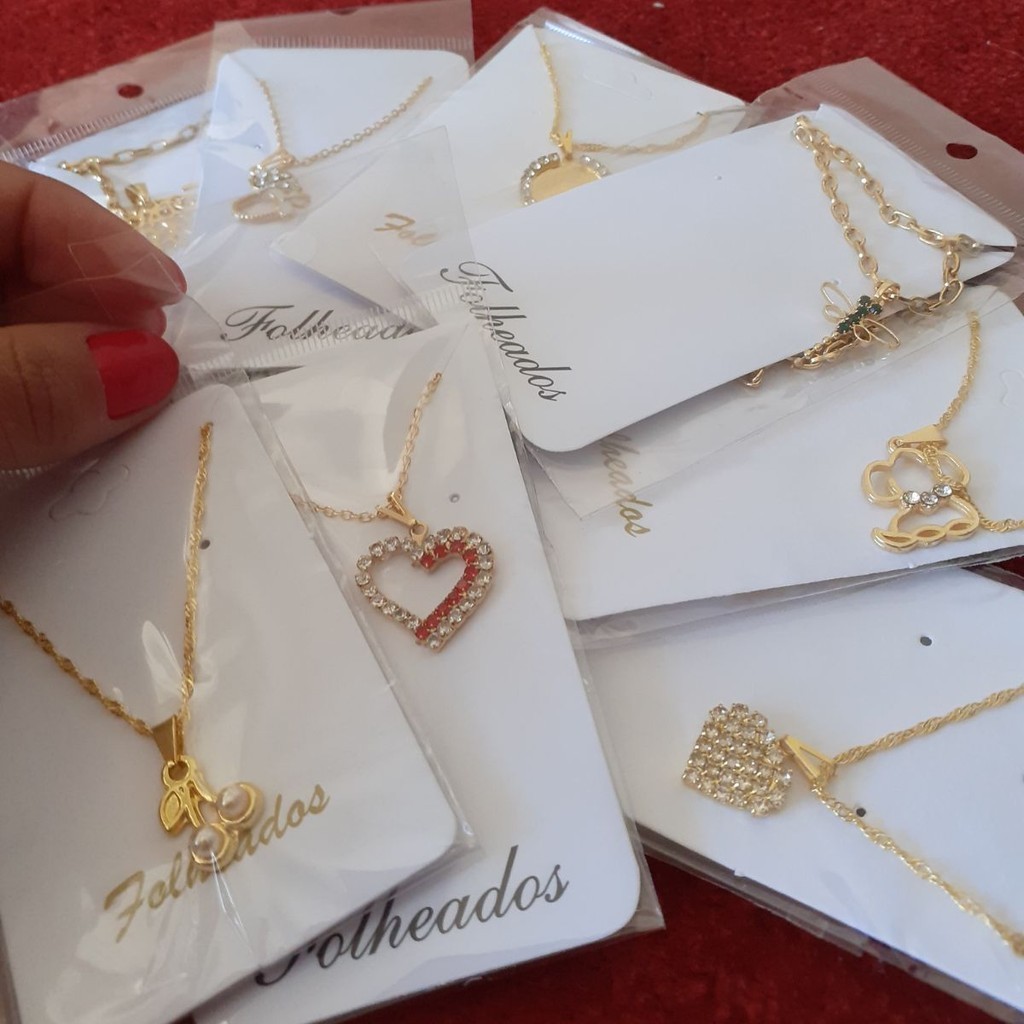 Revenda Kit com 20 Peças Correntes com Pingentes Folhadas a Ouro 18k 22Fem-M