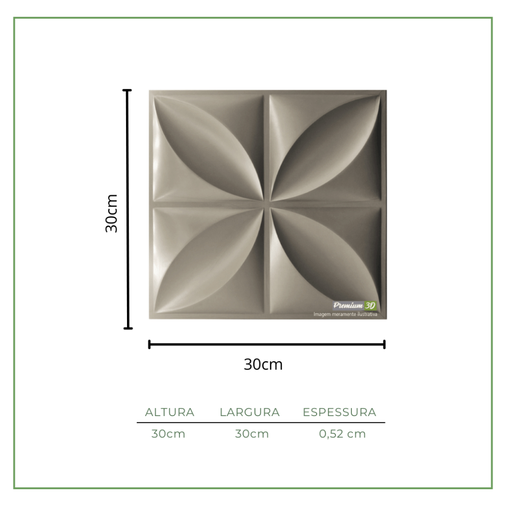 Os Revestimentos Premium 3D da marca Direct Borrachas são os únicos do mercado que já vai fabricado com a cor desejada, que não amassa e que pode ser retirado e reinstalado em outro ambiente em casos de mudanças, realizando a troca da fita dupla-face. *Especificações*: Venda por caixa Caixa: 22 peças por caixa (2m²) Peso por caixa: 4.0kg Medida da peça: 30x30cm Espessura de cada peça: 5,2mm Composição: Plástico de Engenharia ABS Aplicação: Áreas internas Instalação: Acompanha fita dupla face - Marca 3M Corte: Feito com serra de arco Versatilidade: É possível aplicar na parede, e em casos de mudança, retire as placas e leve com você para uma próxima aplicação (realize a troca da fita). *Contraindicações*: - Não instale o produto próximo ao fogo. As peças são de termoplástico, o contato com o fogo danifica o produto. - Não indicado a aplicação em banheiro com a fita dupla-face, nesses locais a instalação deve ser feita com cola de contato. - É contraindicado em paredes nas seguintes situações: reboco, tijolo, massa, úmida, mofo ou desnivelada. - A parede deve estar lisa, seca, limpa e com no mínimo 1 demão de tinta. - Não instalar sobre teto ou chão. - É contraindicado em paredes com texturas (exceto o grafiato). - É contraindicado utilizar a mesma fita dupla-face que foi aplicada na parede e retirada logo em seguida. - Para aplicar sobre azulejos, antes é necessário realizar a limpeza do azulejo com álcool isopropílico. ATENÇÃO COM O LOTE: "Se houver a compra do mesmo produto em datas diferentes, haverá diferença de tonalidade! Isso acontece porque a compra do material em datas diferentes, gera lotes diferentes. A pigmentação das tonalidades dos revestimentos podem variar de fabricação para fabricação devido uma quantidade de matéria prima que é pesada e importada de fornecedores, podendo mudar levemente a cor do revestimento de acordo com o lote. Além disso, recomenda-se a compra do material incluindo uma margem de sobra de 5% a 10% em todos os tipos de revestimentos, conforme NBR981/87 da ABNT. Essas peças a mais pouparão você de ter que realizar uma nova compra caso haja erros de metragem ocasionando falta de material, e ficam de reserva caso precise fazer algum reparo após a conclusão da obra/ instalação exatamente com o mesmo lote e tonalidade. Então o mais indicado é sempre verificar a quantidade de peças que será necessário (peça ajuda para a nossa equipe, se necessário) para revestir a área, através de uma paginação ou considerar uma margem de 1 caixa a mais, caso não tenha certeza.