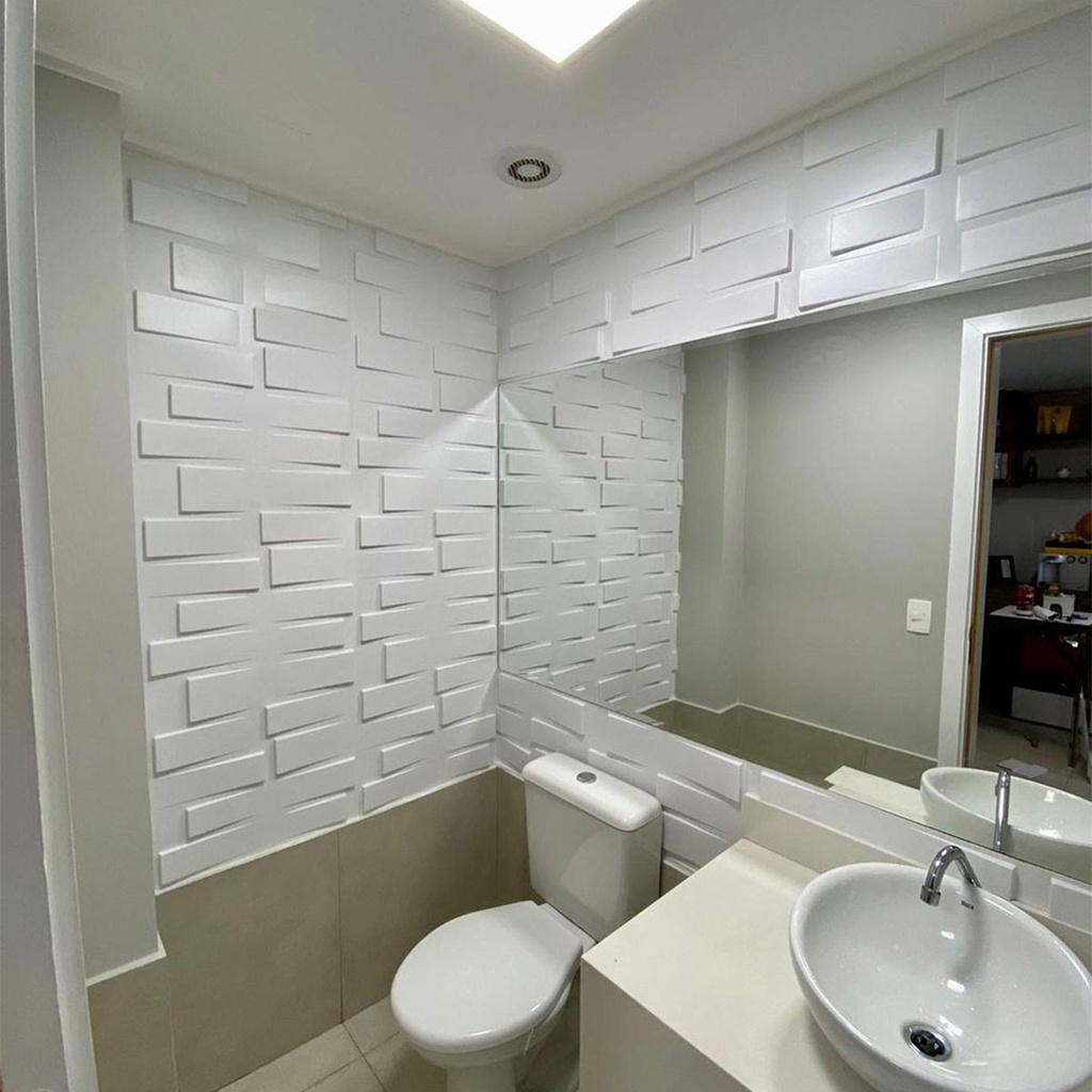 COLAÍ ADESIVOS 1unidades CASA NOVA SEM REFORMA!!! Paredes lindas e decoradas sem dores de cabeça! Imagine você mesmo transformando e decorando um cantinho especial de sua casa ou trabalho. A Placa de PVC Colaí é versátil, prática, fácil de aplicar e com baixíssimo custo. Paredes lindas e decoradas sem dores de cabeça! MODELOS EXCLUSIVOS - ENVIAMOS PARA TODO O BRASIL TODAS AS NOSSAS PLACAS ACOMPANHAM FITA AUTOCOLANTE DUPLA FACE TODAS AS PLACA SÃO ALTO RELEVO 3D! Vantagens: •Faça Você Mesmo! • Aplicação rápida, fácil e sem sujeira; • Lavável (com pano macio umedecido em água e sabão neutro) e resistente à água; • Antimofo e antibacteriano; • Não tóxico; • Alta durabilidade; • Pode ser aplicado na parede sem a necessidade de outros acabamentos, massa corrida, tinta ou reboco; • Produto de Alta qualidade, caso queira mudar a cor do produto, pode pintar com tinta spray, automotiva ou látex; • Corte fácil com tesoura e estilete para acabamentos; • Já possui fita fixada para a aplicação. Tamanho de cada Placa: 50X50cm Área de cobertura de cada placa: 0,25m² São necessárias 4 placas para render 1 metro quadrado. DADOS TÉCNICOS DO PRODUTO: – Cor: Branco – Espessura: 0,50mm – Material: Poliestireno de Alto Impacto IMPORTANTE: – Pedidos em datas diferentes podem haver diferença de tonalidades entre as placas, compre a quantidade necessária em um só pedido. – Caso precise de ajuda para descobrir a quantidade que irá precisar é só nos enviar a medida de sua parede, Altura X Largura na aba de perguntas.