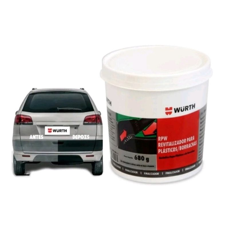 Descrição RPW REVITALIZADOR PARA PLÁSTICOS E BORRACHAS WURTH 680g Descrição: Produto para revitalizar peças plásticas e borrachas, desgastadas/esbranquiçadas pela ação do tempo. Não deixa a peça engordurada e com resíduos, resistente à água. Produto à base de gel siliconizado. CARACTERÍSTICAS: • Restaura o brilho, a cor das partes plásticas e borrachas. • Protege as peças plásticas contra raios ultravioletas e chuva. • Protege contra ressecamento. • Secagem rápida. • Em todos os tipos de plásticos desgastados ou esbranquiçados, como parachoques de carros, maçanetas, painéis automotivos, capotas marítimas, acabamentos plásticos. • Borrachas ressecadas, como frisos de portas e borrachas de vedação. Modo de usar: • Antes de aplicar o produto, limpe e seque bem a superfície. • Aplique o produto em gel com uma esponja ou pincel macio, espalhando-o por toda superfície. • Retire o excesso com um pano limpo e macio, de preferência um pano de microfibra ou outro que não libere fiapos. • Para o produto em spray, aplicar uniformemente a uma distância de 10 cm da superfície. Restrições de uso: • Nunca aplique o produto sob o sol. • Nunca aplique o produto quando a peça estiver quente. Informação de segurança, limpeza e manuseio do produto: • Após o uso total do produto, não reutilizar a embalagem. • Não comer, beber ou fumar durante o manuseio do produto. • Utilizar os EPI’s indicados para a aplicação. • Evitar qualquer contato com os olhos. Evitar o contato com a pele. Não ingerir.