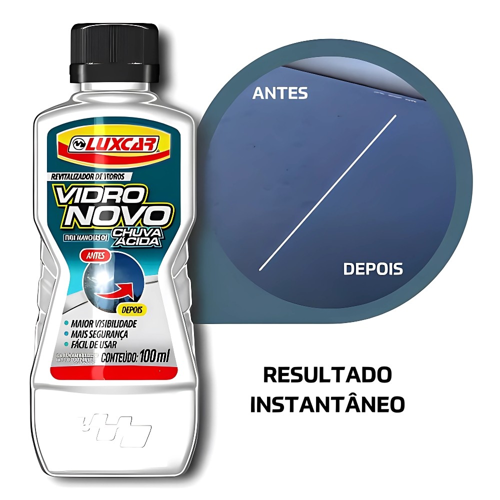 Vidro Novo Luxcar - Removedor de Manchas de Chuva Ácida 100 ml Elimine Manchas de Chuva Ácida, Poluição e Impurezas! A Luxcar apresenta o Vidro Novo Luxcar - Removedor de Manchas de Chuva Ácida, uma solução completa para remover as manchas de chuva ácida dos vidros dos carros! Com uma fórmula exclusiva, ele elimina as manchas mais resistentes sem danificar o vidro. O produto vem com um par de luvas nitrílicas e um aplicador que não arranha. Ele não só limpa e descontamina, mas também previne o aparecimento de novas manchas, deixando os vidros mais transparentes e protegidos por muito tempo. Os vidros dos carros ficarão hidrofóbicos, ou seja, repelentes à água! Para usar, basta aplicar o produto com movimentos verticais e horizontais após a lavagem, enxaguar e secar! Além de melhorar a estética do carro, a remoção das marcas e manchas nos vidros aumenta a segurança ao dirigir, especialmente à noite, quando os faróis dos carros podem ofuscar a visão do motorista se houver manchas nos vidros. Um carro com os vidros limpos e transparentes fica mais valorizado. Com o Vidro Novo Luxcar - Removedor de Manchas de Chuva Ácida, nenhuma mancha nos vidros será um problema! Seu Vidro Novo de Novo! Vantagens: • Ação instantânea • Inclui par de luvas e aplicador exclusivo • Remove as manchas mais difíceis com facilidade • Alto rendimento • Mais visibilidade e segurança Modo de usar: 1 - À sombra, longe do sol e com os vidros frios: lave e seque-os muito bem antes de aplicar o vidro novo luxcar. 2 - Coloque um pouco do produto no aplicador, cuidado para não derramar em nenhuma parte do carro ou chão. 3 - Nos vidros dianteiro e traseiro, faça aplicação dividindo-os em 3 partes. Sempre com movimentos horizontais e verticais. 4 - Enxágue com água corrente cada parte imediatamente após a aplicação. Caso seja necessário, repita a aplicação do produto. IMPORTANTE: não deixe o produto secar nos vidros, caso isso ocorra, umedecer novamente o aplicador com o produto, reaplicar e enxáguar na sequência. Caso derrame o produto sobre a lataria, faróis, plásticos, borrachas ou chão, remova imediatamente com água corrente para não manchar. Não utilize outro tipo de aplicador ou esponja, só o fornecido nesta embalagem. ATENÇÃO: não usar em vidro que não seja original. Não usar em espelhos retrovisores ou vidros blindados (devido o produto ser ácido, pode ocorrer a delaminação no vidro e assim, a perda de eficácia balística). Não usar em para-brisas trincados ou com riscos mais profundos ocasionados pelas palhetas, a acidez do produto pode fazer com que tamanho do risco aumente. Não utilizar na parte interna dos vidros. ATENÇÃO: Antes de usar, faça um teste de compatibilidade: • Baixe o vidro do carro e realize o teste na parte do limite superior, assim, caso ocorra algo indesejado, ao subir o vidro, essa parte não ficará visível. • Realize o teste em uma área de 2 cm². • Faça a aplicação conforme a instruções de uso. • Ao final do teste, o vidro deve ficar com água aderida, sem manchas e sem opacicidade. FAVOR CONSULTAR O VENDEDOR SE REALMENTE É COMPATÍVEL COM SEU VEÍCULO! • Valor unitário • Produto novo e original • Envio do pedido com Nota Fiscal • Com garantia de fábrica • Imagem meramente ilustrativa • Antes de efetuar o pedido favor tirar as dúvidas no campo de perguntas Cuidar do seu carro de maneira preventiva gera economia e acima de tudo garante sua segurança para dirigir tranquilo. A Nova Via trabalha para oferecer melhor em autopeças, com um estoque de mais de vinte mil itens para que você encontre sempre o que precisar. Distribuímos autopeças das maiores e melhores marcas do mercado, com um atendimento qualificado de profissionais que atuam há mais de vinte anos no segmento. Nova Via Autopeças: sempre o melhor