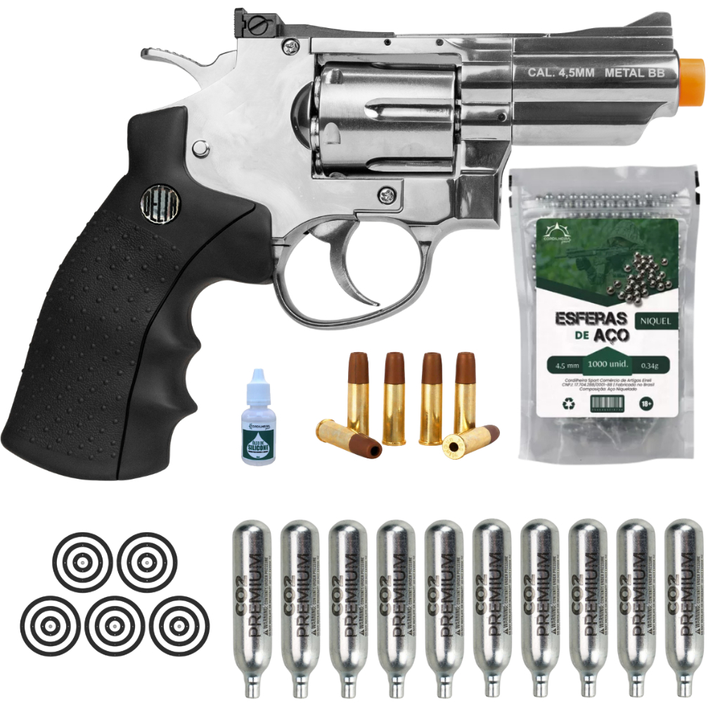Revólver de Pressão 708s NIQUELADO 2'' CO2 4,5MM Delta/Rossi CO2 4,5mm + Escolha seu kit