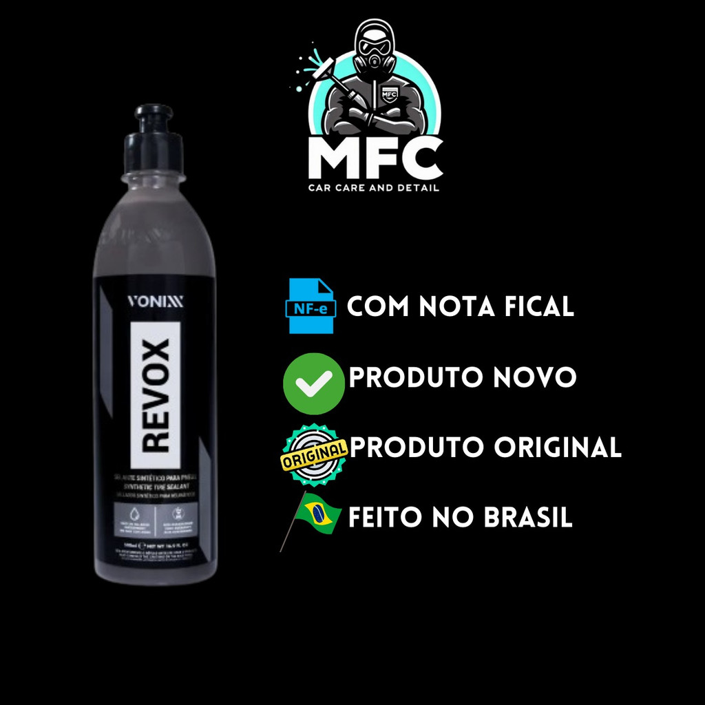 Selante Sintético Pneus 500ml - Revox - Vonixx - PretinhoSELANTE PARA PNEUSREVOX é um selante sintético para pneus, formulado para proteger, dar brilho e renovar o seu aspecto, além de promover total hidrorrepelência. Sua fórmula exclusiva é livre de solventes, ecologicamente correta e não inflamável.REVOX é extremamente resistente à lama e chuva, deixando o pneu limpo por mais tempo.Não recomendamos aplicar Revox em partes plásticas.NÃO SAI NA ÁGUAALTA DURABILIDADEMÁXIMO RENDIMENTOImagens Meramente Ilustrativas.