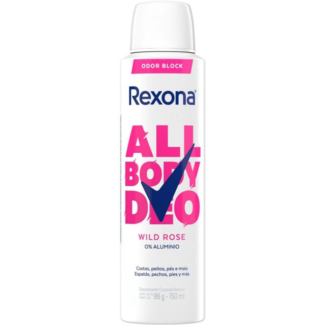 Rexona All Body, Desodorante Corporal Aerossol, Para o Corpo Todo, Wild Rose 150ml