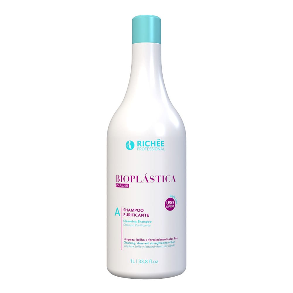 Uma linha versátil para o cuidado diário dos fios. Contém Extrato de Aloe Vera, Ceramidas e Proteína Hidrolisada da Seda, que oferecem alto poder de hidratação e emoliência, proporcionando brilho e suavidade aos cabelos opacos e sem vida. Além de Queratina e Proteína Hidrolisada de Trigo para o fortalecimento dos fios, evitando a quebra. Indicação: Todos os tipos de cabelos Ingredientes e Benefícios •D-Pantenol: força e maciez•Colágeno vegetal: forma filme protetor e resistência•Queratina hidrolisada: restaura e condiciona•Manteiga de Karité: hidratação e redução do frizz•Óleo de girassol: redução de pontas duplas e antioxidante•Óleo de coco: umectação e brilho•Extrato de Aloe Vera: hidratação e cicatrizante•Proteína Hidrolisada da Seda: elasticidade e emoliência•Proteína Hidrolisada de Trigo: flexibilidade e condicionamento Modo de Usar 1. Com os cabelos molhados, aplique o Shampoo Purificante, massageando suavemente o couro cabeludo em suaves movimentos, permitindo que a espuma se espalhe pela extensão dos fios. Enxágue e repita este processo, se necessário. Resultado: Limpeza, brilho e fortalecimento dos fios. Sobre a linha Bioplástica Uma linha rica em ativos e versátil para o cuidado diário dos fios e uso no dia a dia do salão de beleza. Ideal para todos os tipos de cabelos, que necessitam de maciez, brilho e fortalecimento da fibra capilar. Sobre a Richée Ser Richée é estar sempre um passo à frente. Por isso, a prevenção tem sido o forte na elaboração de produtos com qualidade profissional e acessíveis a todos os consumidores. A tecnologia e o conhecimento sobre a ação dos mais diversos ingredientes ativos da biodiversidade brasileira e mundial estão entre os aspectos importantes da marca. E a criatividade na elaboração de cosméticos que atendam a todas as exigências é um importante diferencial que permitiu à Richée estar hoje entre as marcas nacionais mais relevantes. O compromisso da Richée com a beleza real, se expressa na vontade de que os produtos tragam benefícios além da beleza externa e na identidade cultural e étnica, de modo que a beleza seja expressa de modo individual e único por cada um de nossos consumidores. Esse mesmo compromisso está presente nos mais de 30 países em que a Richée atua, reforçando ainda mais as qualidades plurais de nossos produtos. Autenticidade e sofisticação são os ingredientes fundamentais para nosso sucesso.