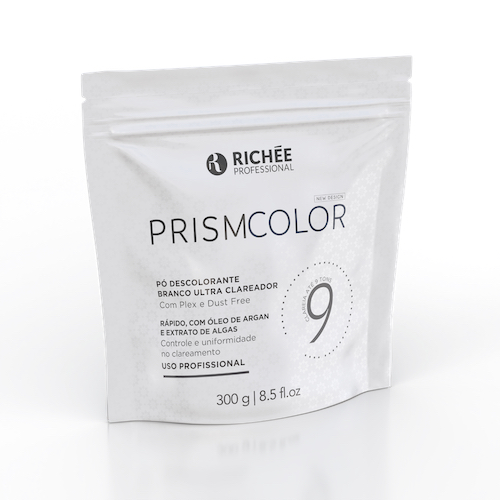 Richée Prismcolor Pó Descolorante Branco Blond Plextem fórmula branca, dust free, com alto poder de clareamento em até 9 tons. Indicado para todas as técnicas de descoloração. Sua consistência cremosa oferece maior rendimento, facilita a aplicação e remoção. Seus ativos previnem o ressecamento e o desgaste excessivo dos fios durante o processo de clareamento. Dá ao profissional o poder de criar loiros mais perfeitos com segurança e eficácia. A linha Richée Prismcolor proporciona um processo de coloração que mantém o cabelo com pHbalanceado, o que favorece o desempenho na fibra capilar, determinando onde o fio necessita mais da ação dos ingredientes vegetais para recuperar as áreas fragilizadas e onde é necessária a ação dos elementos sintéticos. Modo de usar: Misturar o Pó Descolorante Prismcolor com a Emulsão Reveladora, utilizando um pincel e luvas adequadas. Resultado Desejado: Mechas costuradas: 1 + 1 e 1/2 = 30 g de Pó Descolorante para 45 ml de Emulsão Reveladora Mechas irisadas no papel: 1 + 2 = 30 g de Pó Descolorante para 60 ml de Emulsão Reveladora Mechas mãos livres: 30 g de Pó Descolorante para 75 ml de Emulsão Reveladora Espere agir – o tempo de ação varia com o grau de clareamento desejado para o cabelo. Após o tempo de pausa, enxaguar com água morna e shampoo.