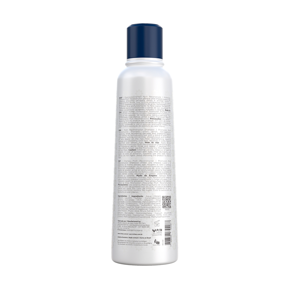 Prismcolor Shampoo Multi Reconstrutor limpa os cabelos quimicamente tratados, coloridos ou descoloridos, recuperando a vitalidade e devolvendo o movimento, brilho e a vivacidade da cor. A linha Richée Prismcolor Cuidados Diários é indicada para cabelos quimicamente tratados, coloridos ou descoloridos. Preserva a cor por mais tempo, além de combater o desbotamento. Trata e hidrata a fibra capilar desde suas camadas mais profundas, reconstruindo as partes danificadas do fio. Nos cabelos úmidos, aplique o Prismcolor Shampoo Multi-Reconstrutor e massageie delicadamente até formar espuma,enxaguando completamente em seguida. Reaplicar se necessário.