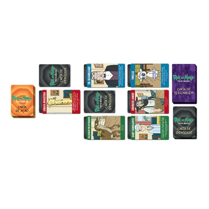Inspirado no episódio Total Rickall de Rick and Morty, esta aventura reproduz a ação e a hilariante imprevisibilidade do universo da série. Dê vida à diversão de Rick and Morty em sua sala de estar com Total Rickall - o jogo que promete gargalhadas, estratégia e uma dose saudável de caos cósmico!Tempo de partida: de 20 a 30 minutos.Jogadores: de 2 a 5.Jogo Solo: NãoIdade: 16+Designer: Matt HyraArtistas: Sem infoPeso: 0,24 kgDimensões(AxLxP): 14x1x3COMPONENTES: 24 Cartas de personagens 60 Cartas de ação 30 Cartas de identidade 1 Carta de primeiro jogador 1 Livro de regrasSLEEVES: 91 (63.5 mm X 88.0 mm) 24 (70.0 mm X 110.0 mm)Edição: GalápagosIdioma: Português