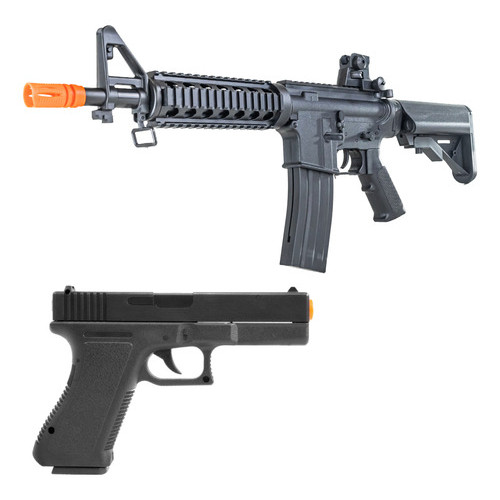 Rifle Fuzi Airsoft M4 E Pistola V307 Vigor Spring Rossi 6mm Pronta entrega, envio em 24 horas úteis. Rifle M4A1 Spring + Pistola GK V307 Spring, BBs e alvos — pronto para treinar e jogar. Produto destinado a maiores de 18 anos. Garantia de 90 dias. Características: - Rifle Rossi M4A1 Spring 6mm, plataforma M4, corpo em polímero, peso 1 kg - Magazine rifle capacidade de 300 BBs, coronha ajustável em 3 níveis, trilhos 22 mm (sup/lateral/inf) - FPS rifle: 226 FPS (0,12 g) — 81 m/s; hop-up fixo; não possui peças metálicas - Pistola Rossi GK V307 Spring 6mm, corpo em polímero, peso 220 g - Magazine pistola: 12 BBs; FPS pistola: 187 FPS (0,12 g) — 57 m/s - Materiais: ambos 100% polímero; mecanismos internos em polímero - Uso: airsoft, treino e recreação (não letal) - Garantia: 90 dias - Produto destinado para maiores de 18 anos - Confirme os dados da conta antes da compra; não emitimos nota fiscal em nome de terceiros - As imagens são meramente ilustrativas Itens Inclusos: - 1x Rifle Airsoft M4A1 Spring 6mm Rossi (magazine instalado) - 1x Pistola Airsoft GK V307 Spring 6mm Rossi - 1x Pacote com 500 BBs 0,20 g - 1x Pacote de alvos para treino - 1x Manual de uso - 1x nota fiscal