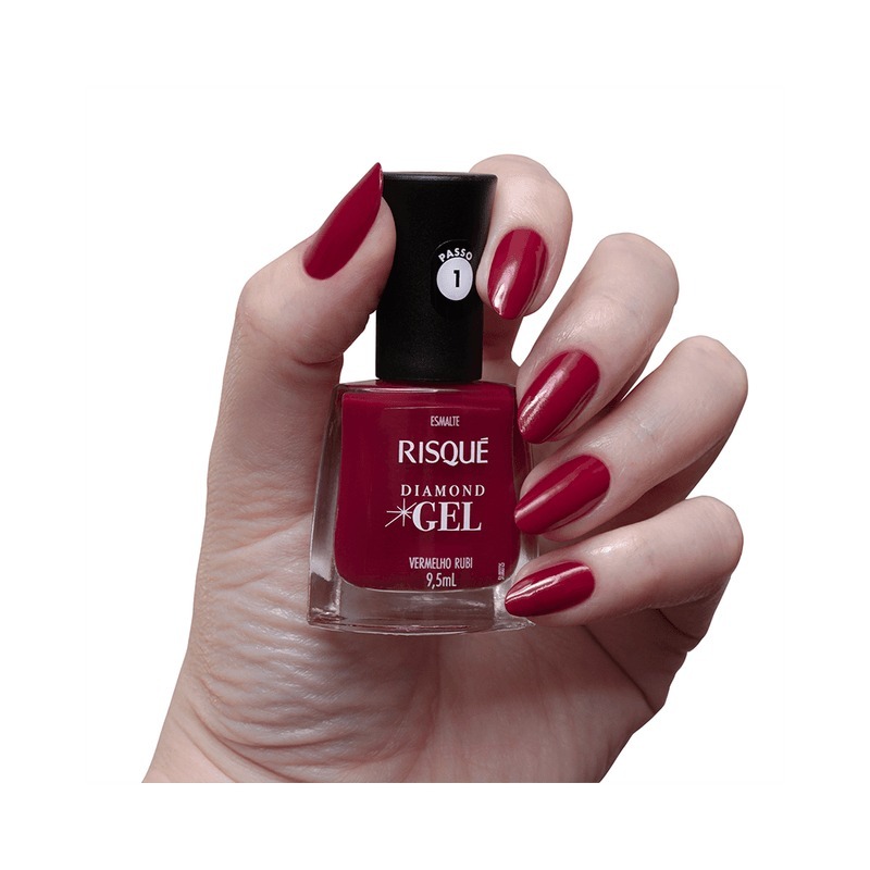 Risqué Kit 9 Esmalte Diamond Gel Vermelho Rosa + 1 Top Coat