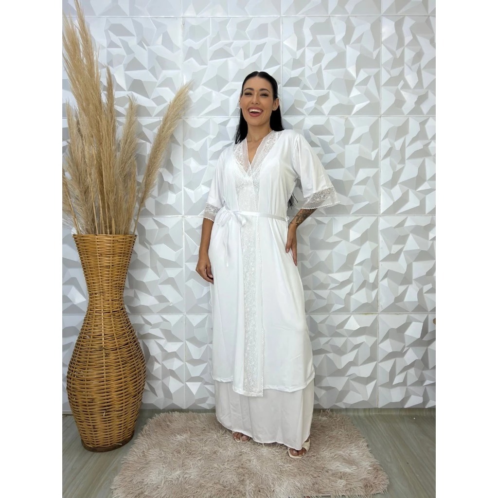 Robe Longo Feminino Com Renda Luxo| Tecido Leve e Macio | Peças Vendidas separadamente