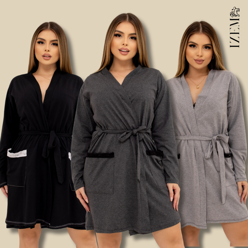 Robe Roupão de Amamentar Gestante Manga Longa de Algodão Confortável Inverno