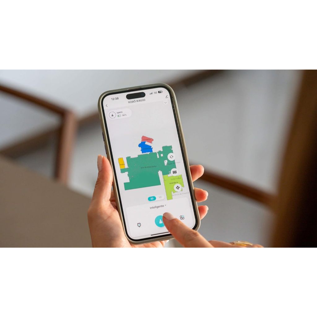 Tecnologia, eficiência e praticidade para uma casa sempre limpa O Robô Aspirador WAP ROBOT W4000 transforma sua rotina com limpeza completa 3 em 1: ele varre, aspira e passa pano com mops giratórios, deixando o ambiente impecável com zero esforço. Pelo app WAP CONNECT, você controla tudo à distância: cria rotinas personalizadas, delimita zonas, renomeia cômodos e usa paredes virtuais. A navegação laser 360° (LDS) com tecnologia SLAM faz o mapeamento em tempo real, salva mapas 2D e 3D e memoriza até cinco andares — ideal para casas e apartamentos grandes. Com 29 sensores, o robô limpa com precisão, evita quedas e colisões, e retorna automaticamente à base autolimpante, que esvazia o reservatório de sujeira sozinha. A manutenção é mínima: apenas a cada 60 dias, em média. Perfeito para quem tem pets, ele remove pelos com facilidade e funciona em qualquer tipo de piso. Possui quatro níveis de sucção, tanque inteligente com controle de umidade e reservatório 2 em 1 (150 ml pó + 270 ml água), além de cinco modos de limpeza para diferentes necessidades. Com design slim em vidro resistente, controle por voz, autonomia de até 2 horas e rodas emborrachadas, o ROBOT W4000 combina praticidade, tecnologia e alta performance para entregar uma limpeza eficiente todos os dias. PRINCIPAIS BENEFÍCIOS 3 em 1 completo: varre, aspira e passa pano com mops giratórios e escovas laterais/central. Controle inteligente: app WAP CONNECT, controle remoto e compatibilidade com Alexa e Google Assistente. Mapeamento avançado: navegação LDS + SLAM, rotas eficientes e memória de até cinco andares. Base autolimpante: esvazia o reservatório automaticamente, com manutenção a cada ~60 dias. Alta autonomia: até 2h de funcionamento contínuo e cinco modos de limpeza. Design seguro: sensores antiqueda e anticolisão + estrutura slim para áreas estreitas.